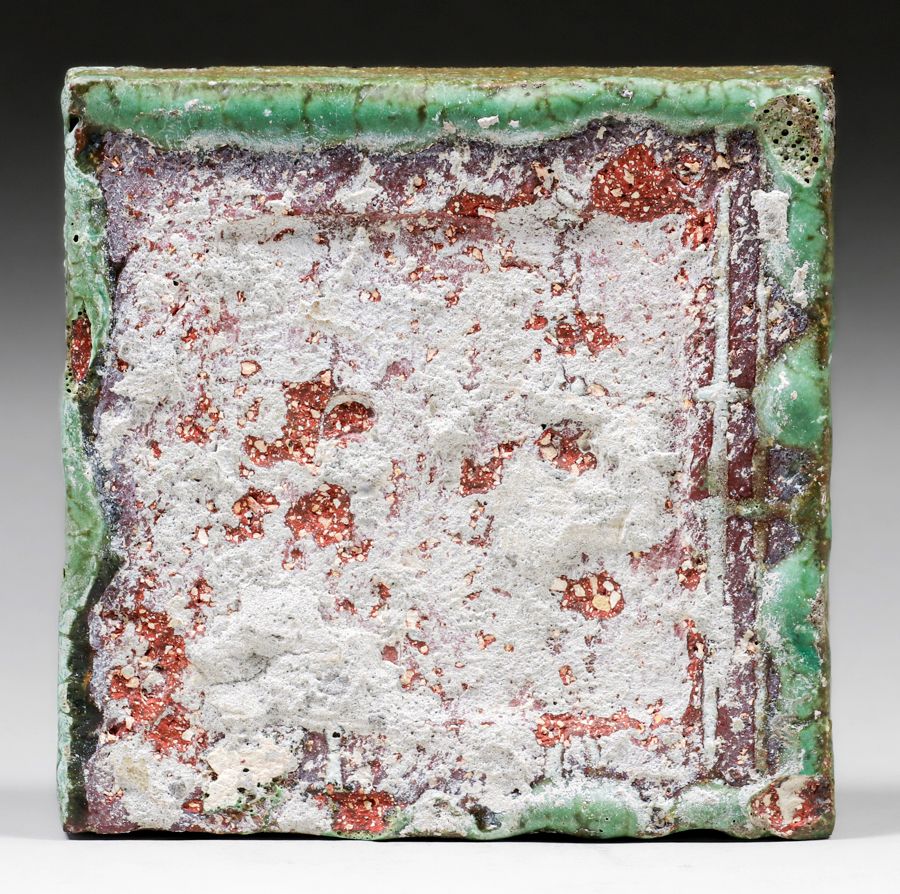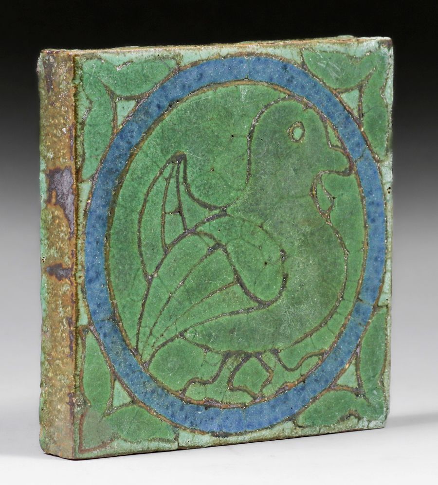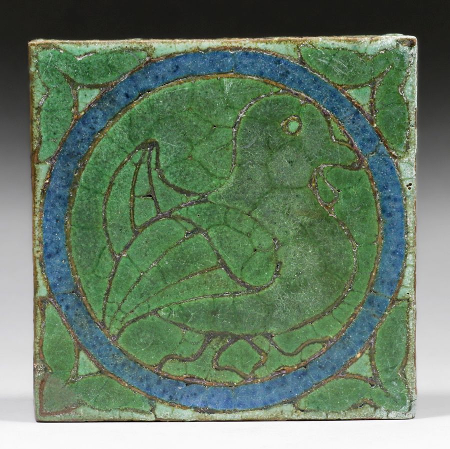 Grueby Faience Duck Tile c1905. Unsigned. Back edge with a couple of chips, front edge is in perfect condition. 5.75″ x 5.75″ $1200