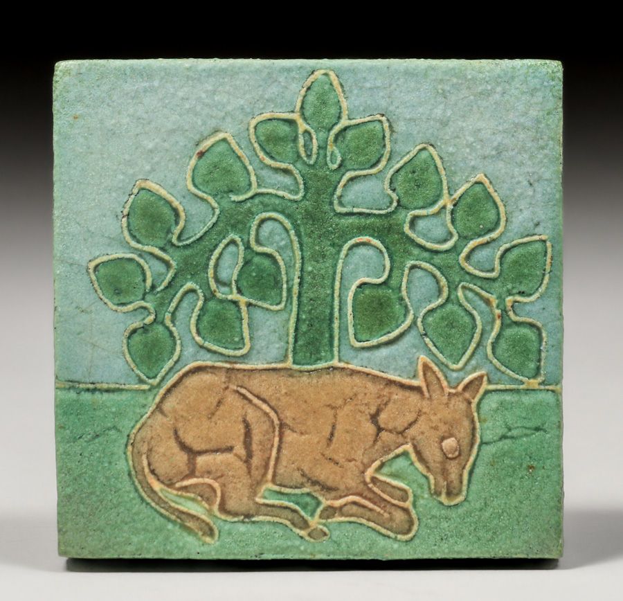 Grueby Faience Horse Tile c1905. Signed only with artist initials "M.M." Perfect condition. 4" x 4" SOLD