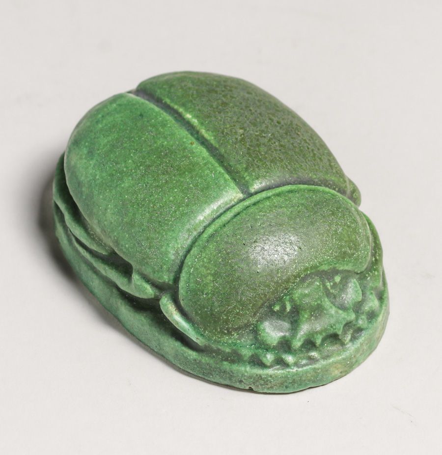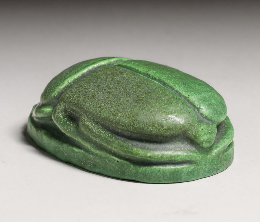 Grueby Matte Green Scarab Paperweight c1910. Signed. Invisible professional restoration to small base chip, otherwise perfect condition. 4″ x 2.75″ x 1.25″h SOLD