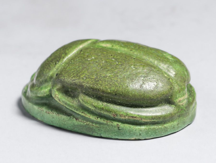Grueby Matte Green Scarab Paperweight c1910. Signed. Perfect condition. 4″ x 2.75″ x 1.5″h SOLD