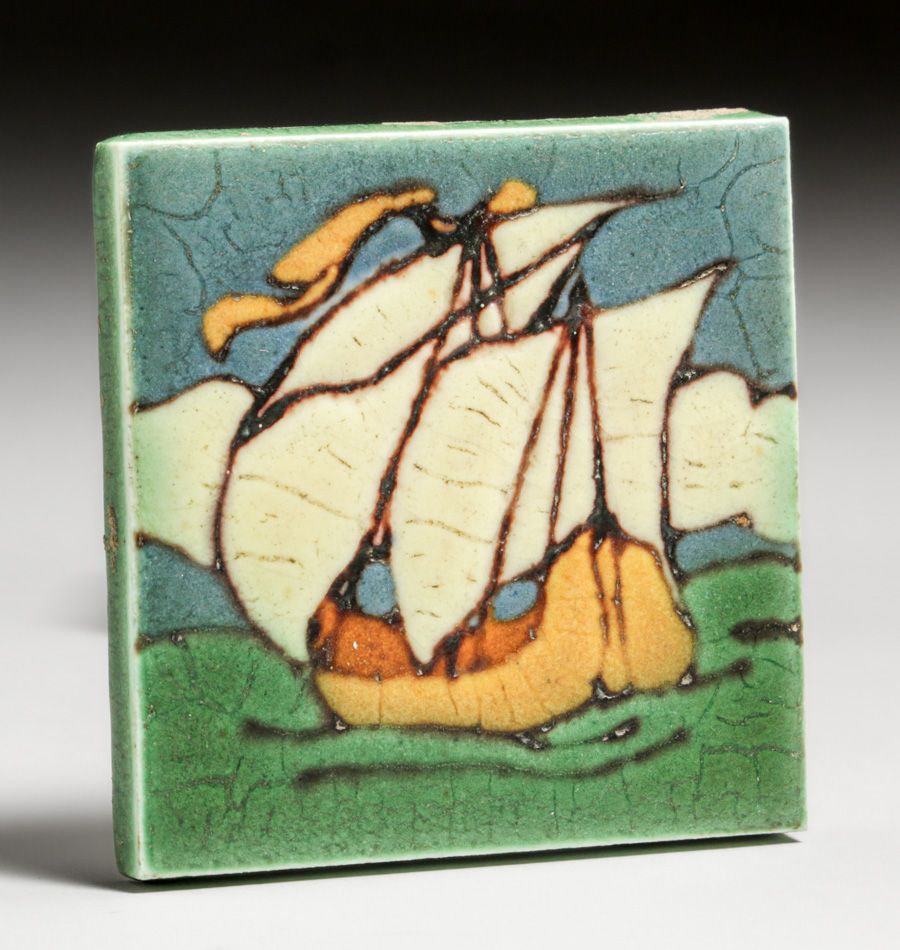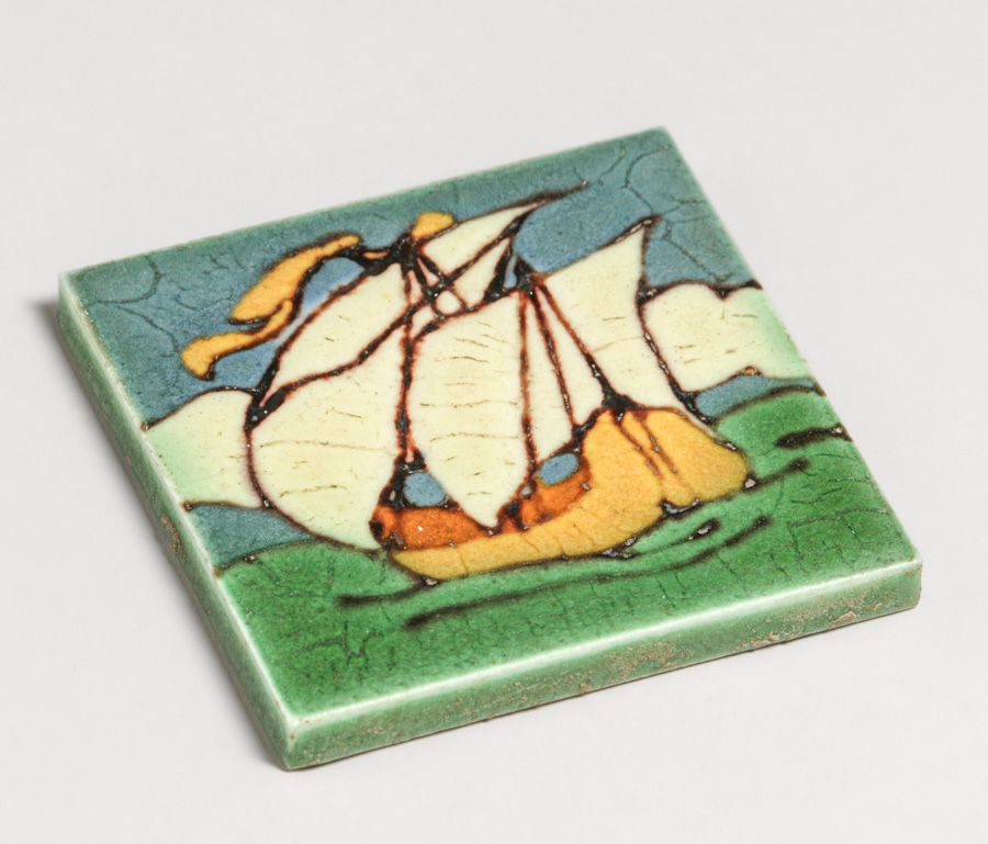- Grueby – Pardee Tile Works Galleon Ship Tile c1917-1920