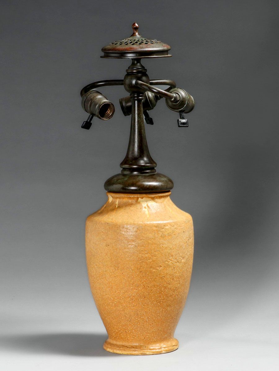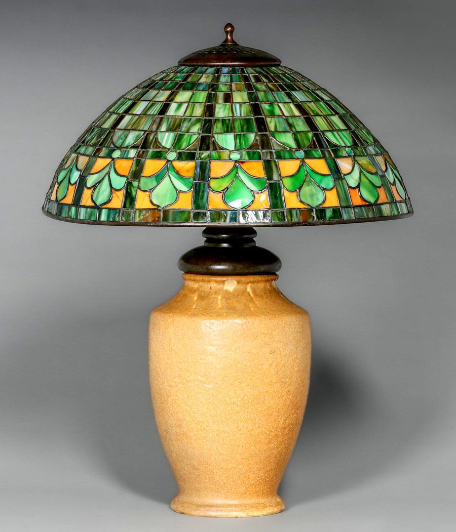 - Grueby Pottery Bigelow & Kennard Leaded Glass Lamp c1910