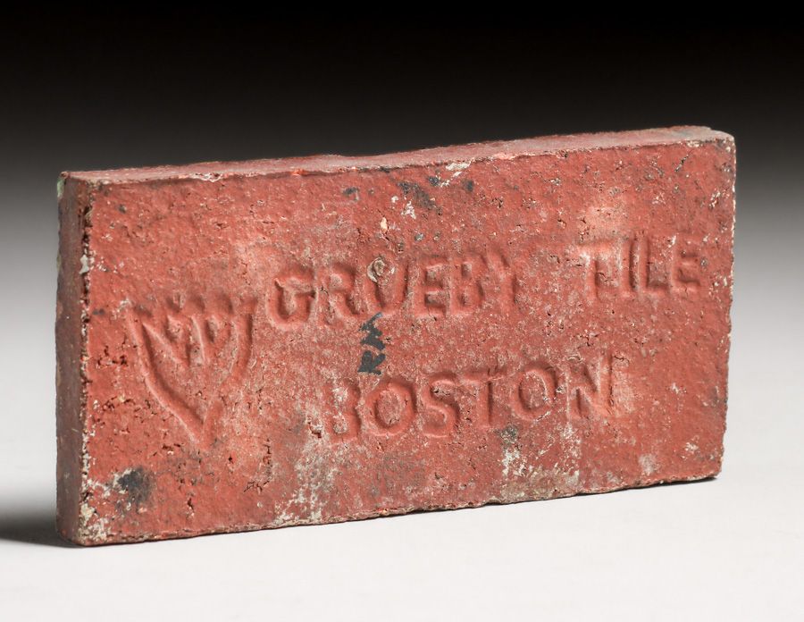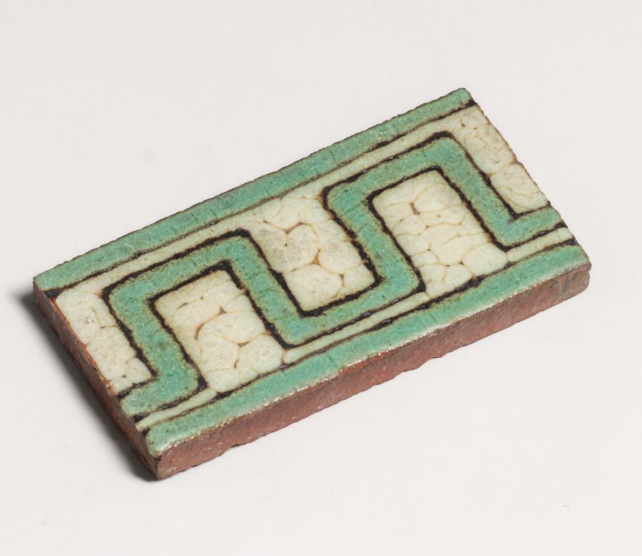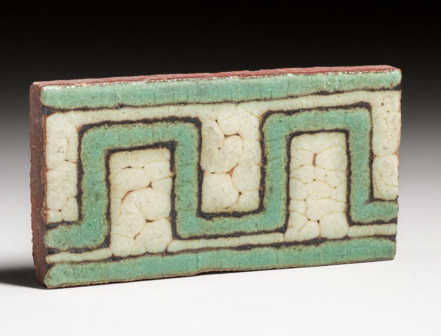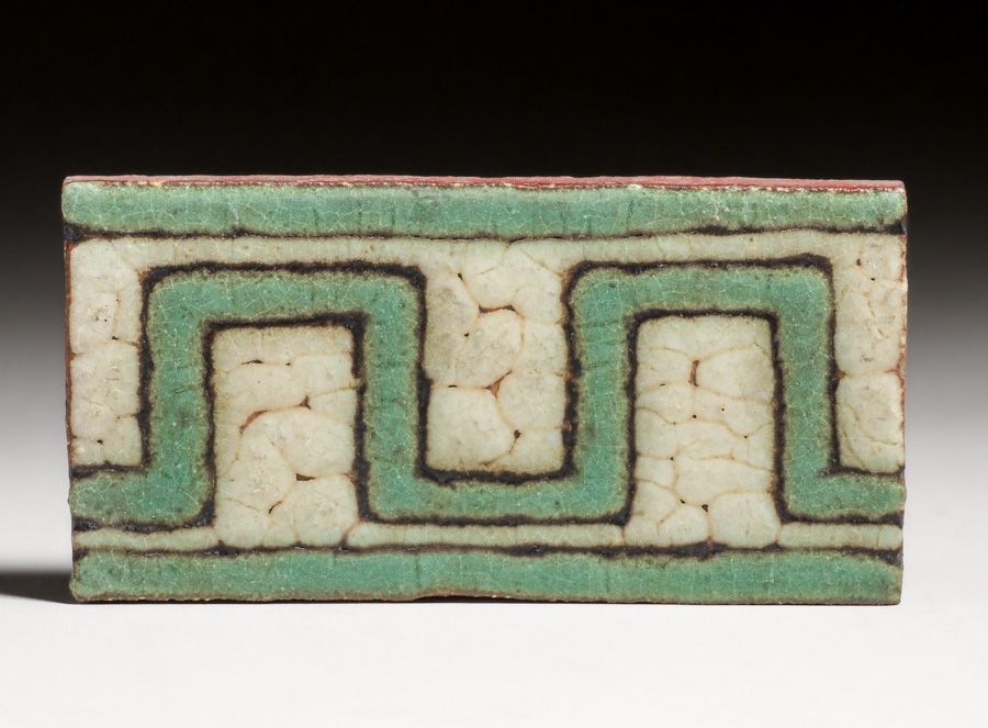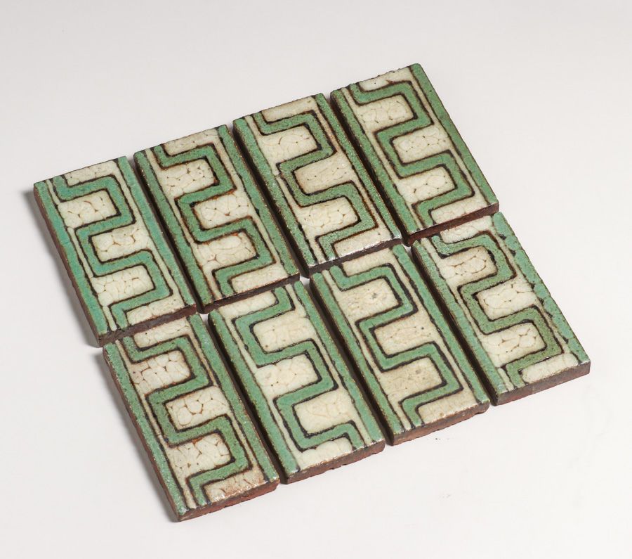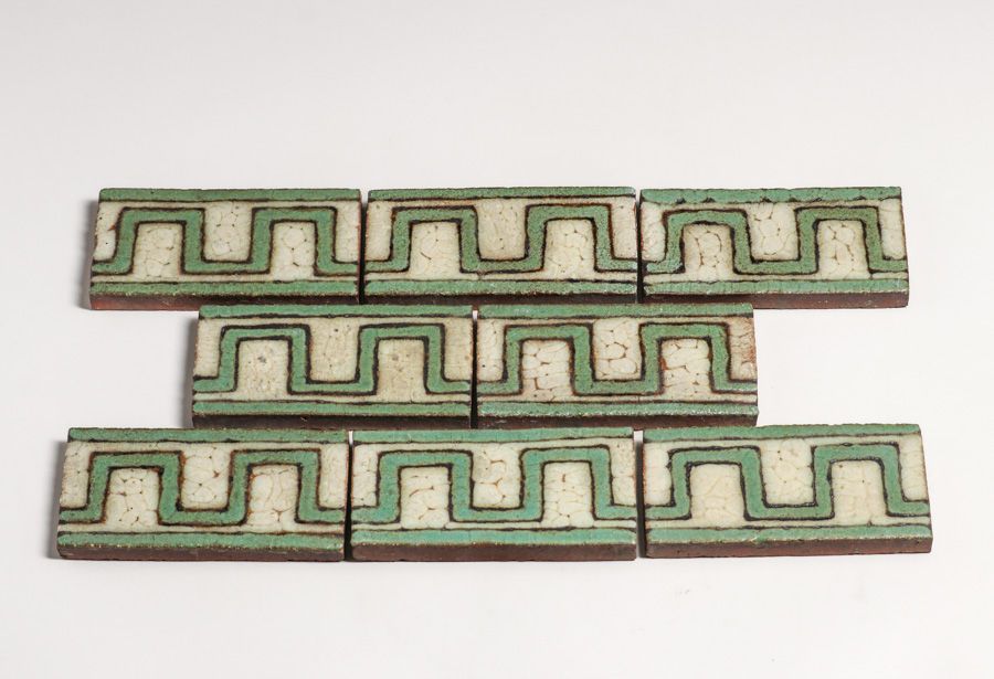 Grueby Pottery Green & White Border Tile c1910. Signed. Perfect condition. Each tile 6" x 3"w SOLD