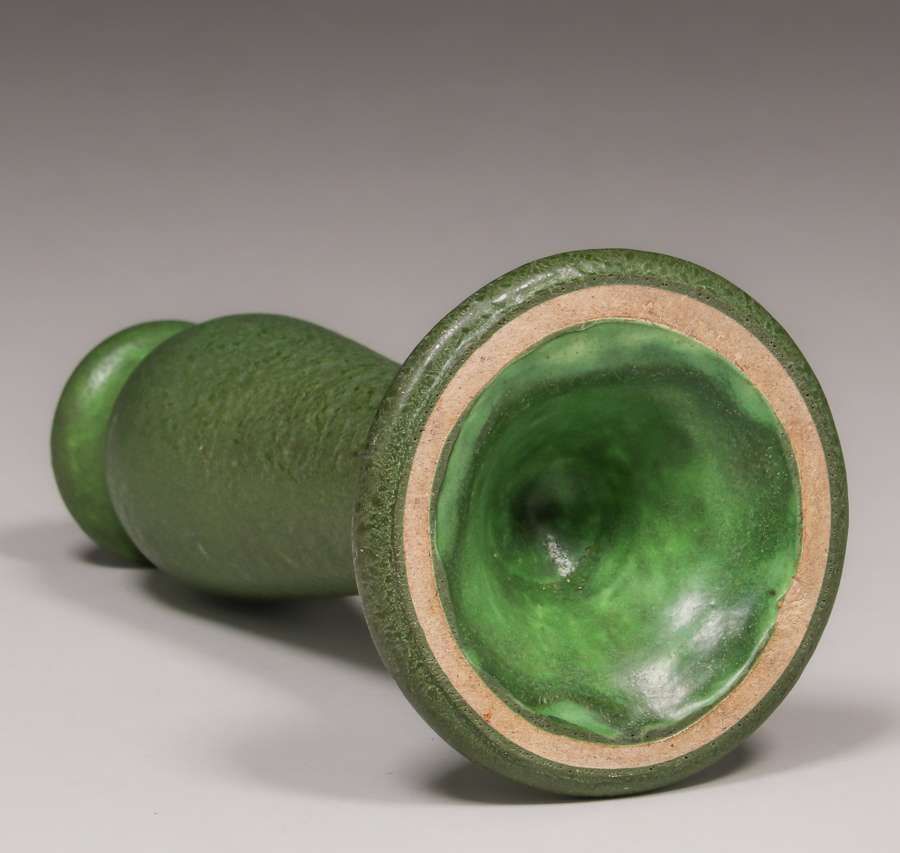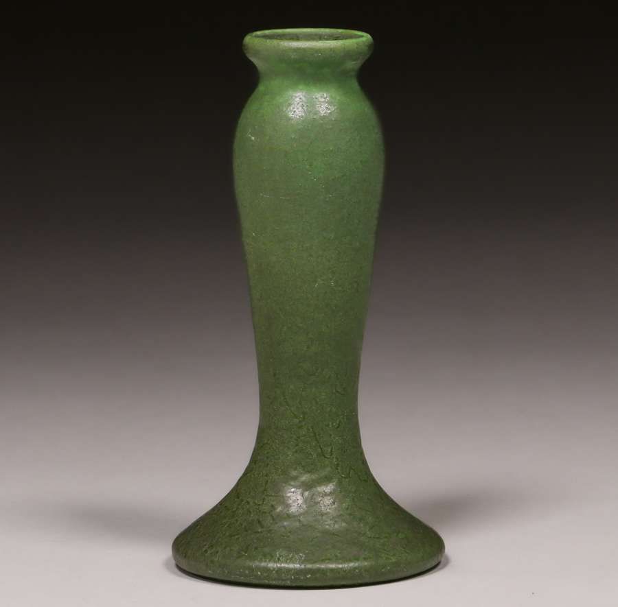 Grueby Pottery Matte Green Candlestick c1905. Glazed over signature. Perfect condition. 9"h x 4.5"d SOLD