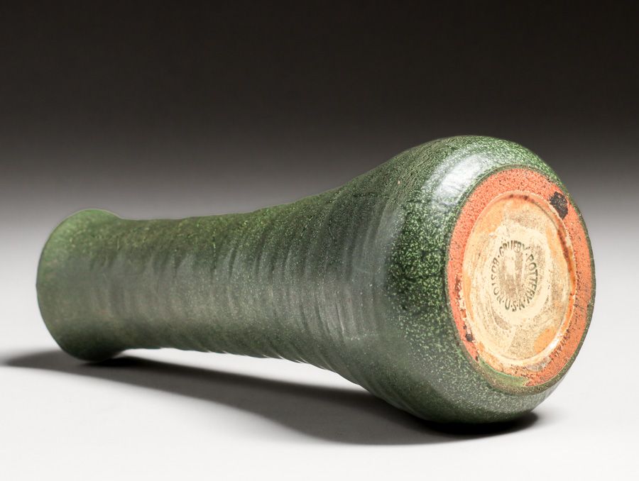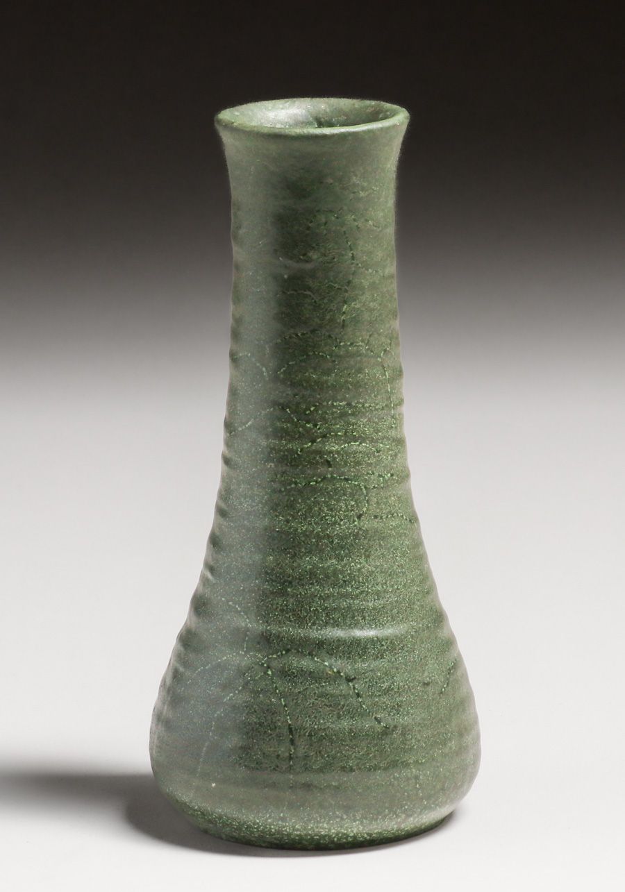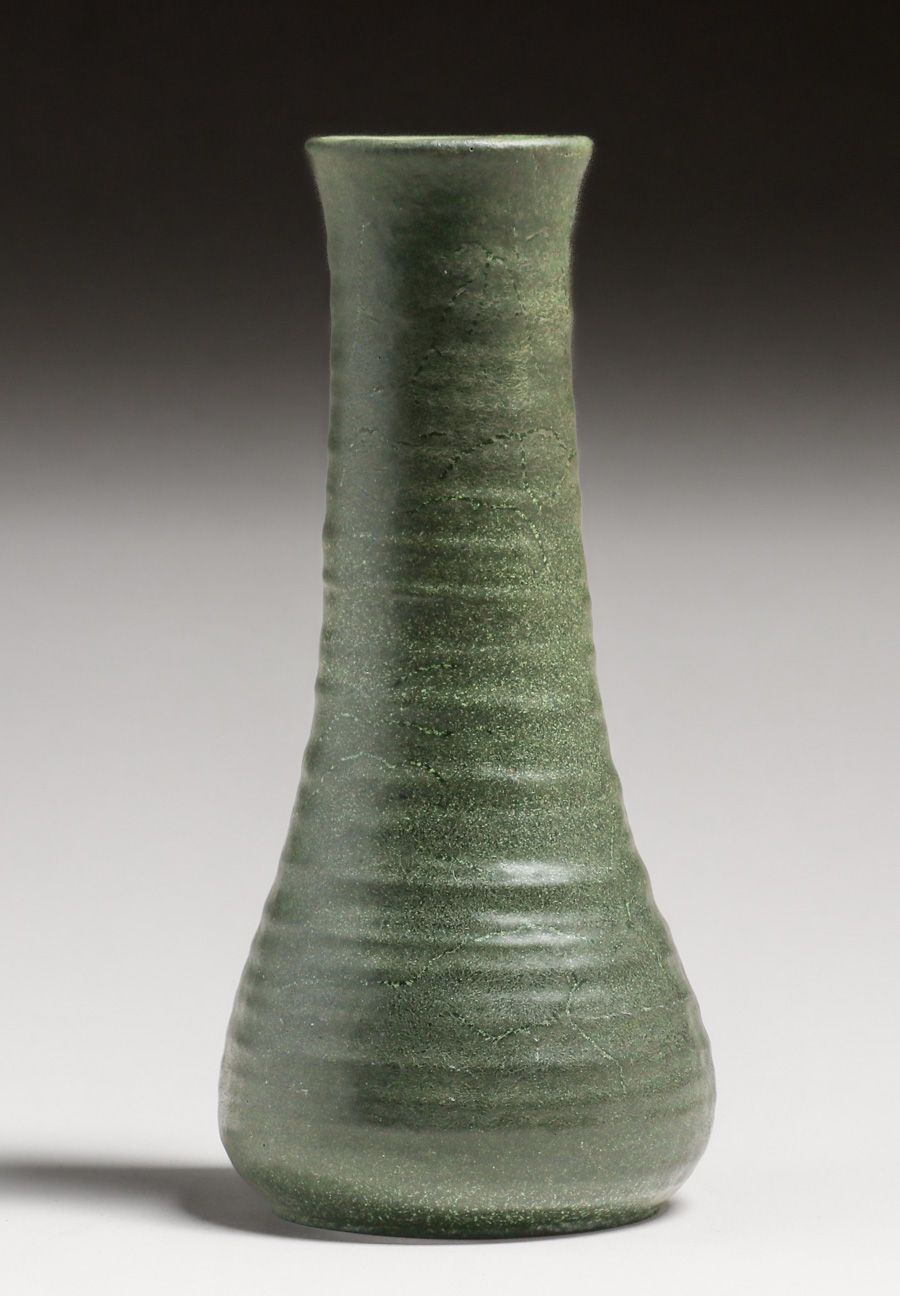 - Grueby Pottery Matte Green Ribbed Vase c1905