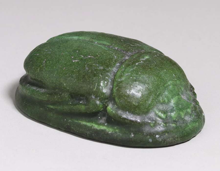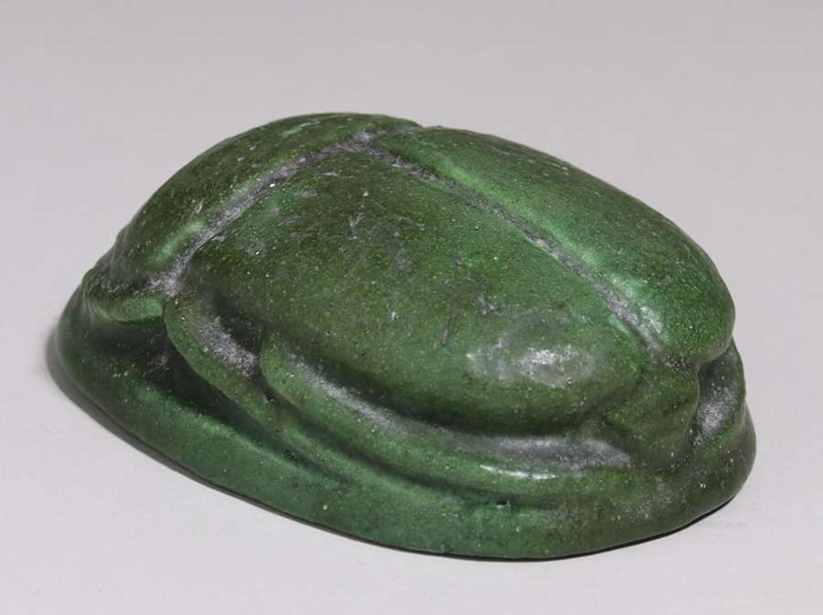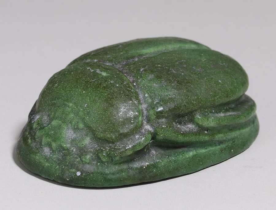 - Grueby Pottery Matte Green Scarab Paperweight