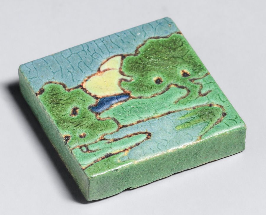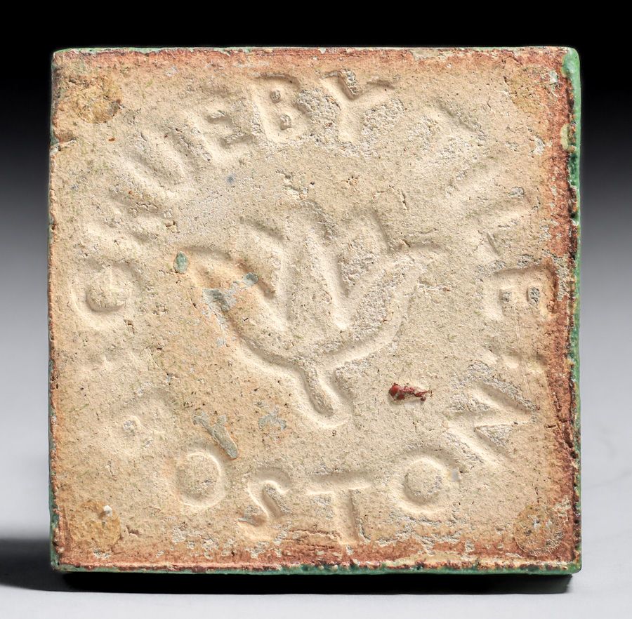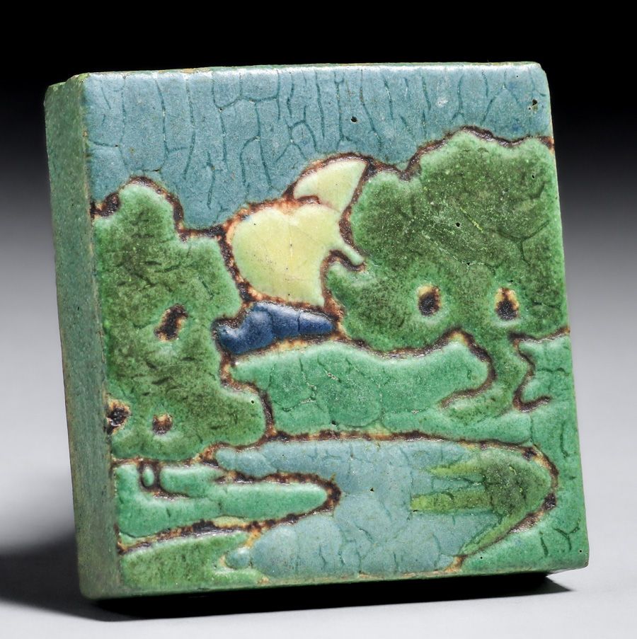 Grueby Pottery Oak Tree Tile c1910. Signed. Perfect condition. 4" x 4" SOLD
