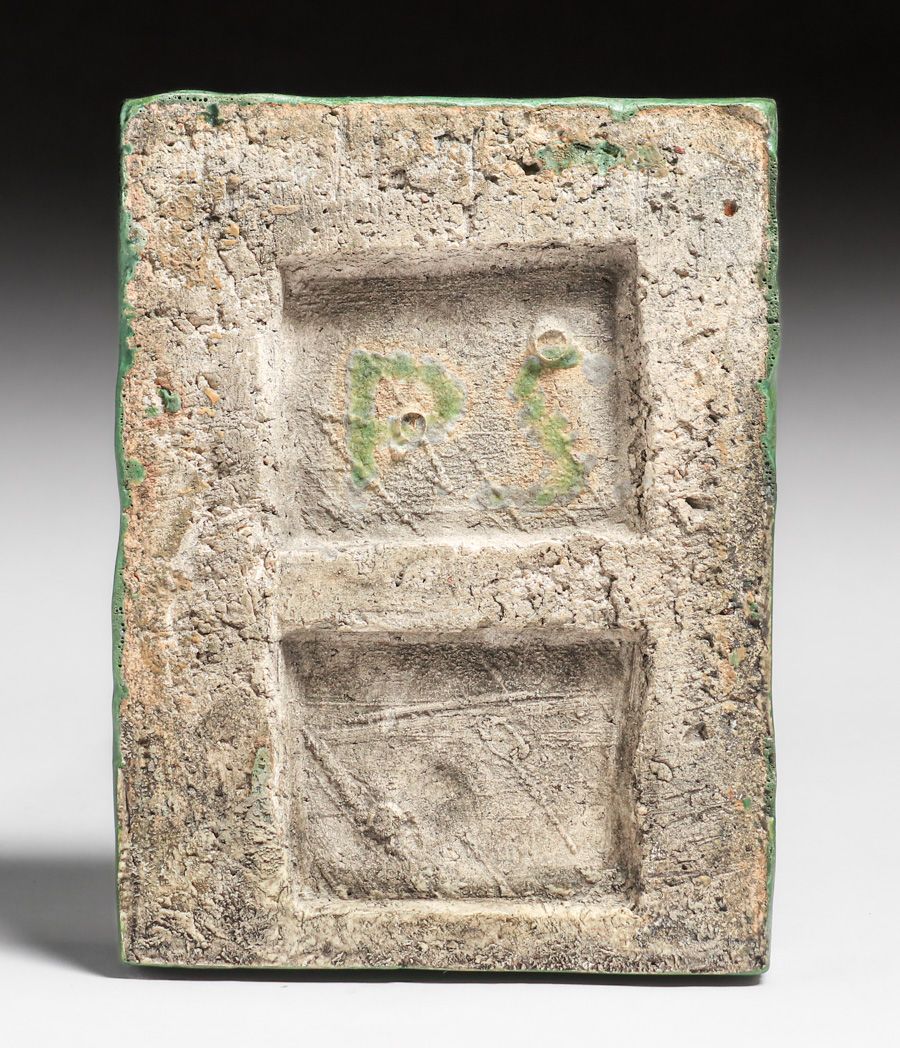 Rare Grueby Advertising Candle Tile c1905. Signed. Invisible professional restoration to two small corner chips, otherwise perfect condition. 6.25"h x 4.75"w SOLD