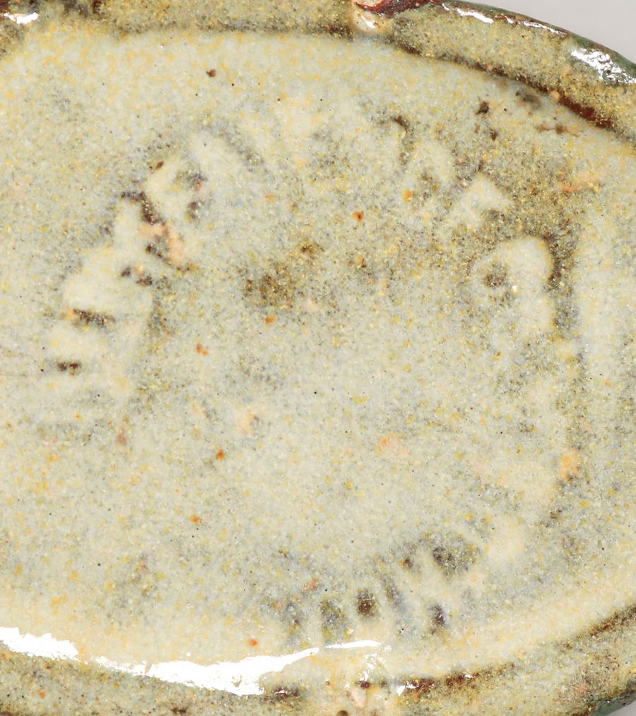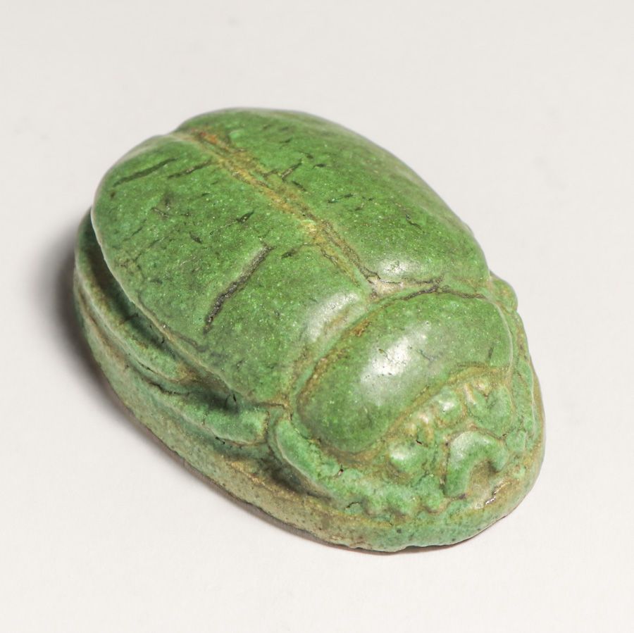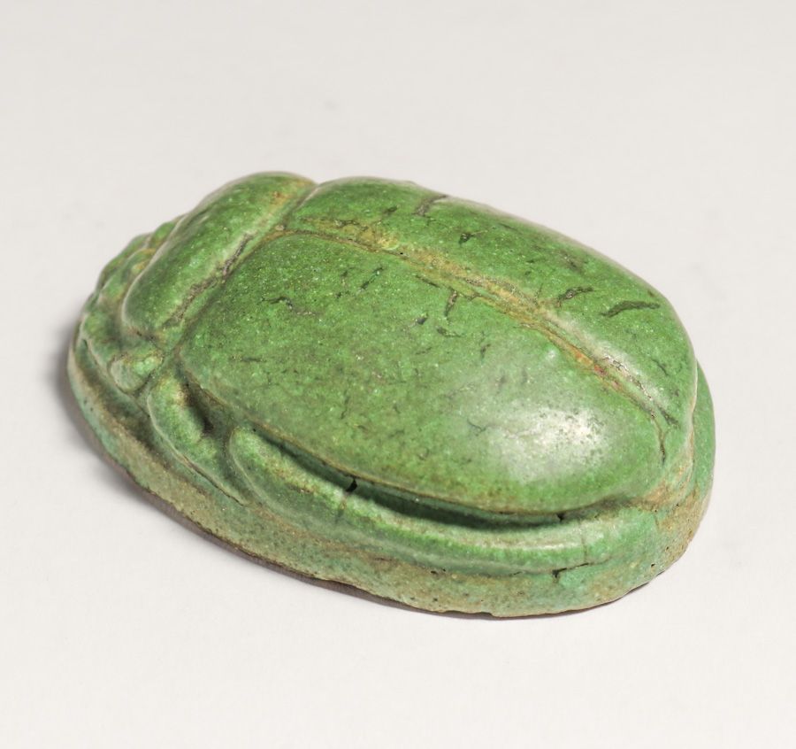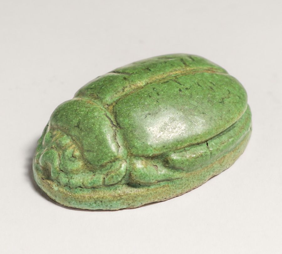 Small Grueby Faience Matte Green Scarab Paperweight c1905. Signed. Perfect condition. 2.75" x 1.75" x 1"h SOLD