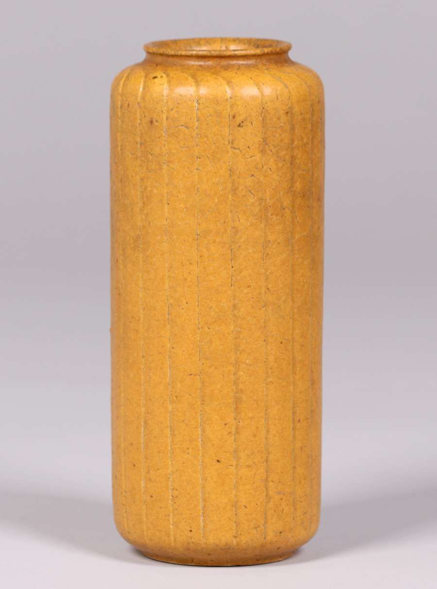 - Unusual tall Grueby matte ocre glazed vase