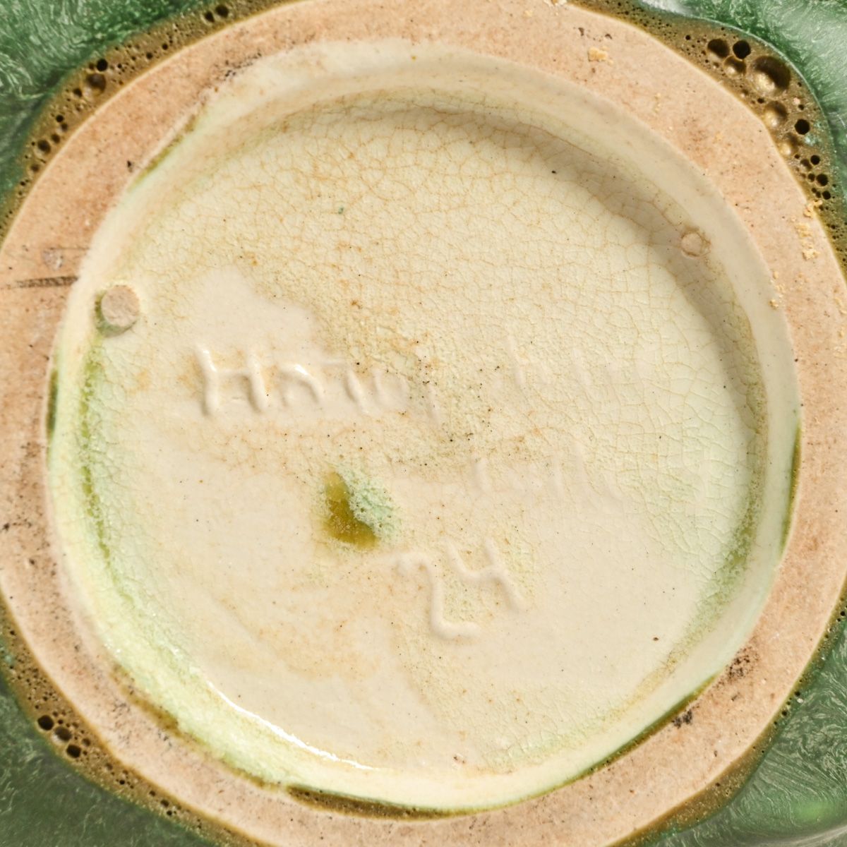 Hampshire Pottery #24 Artichoke Shaped Bowl c1910. Signed. Perfect condition. 4.5"d x 2.75"h