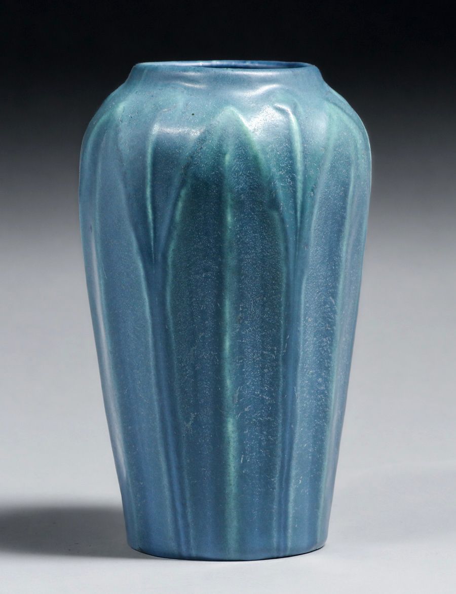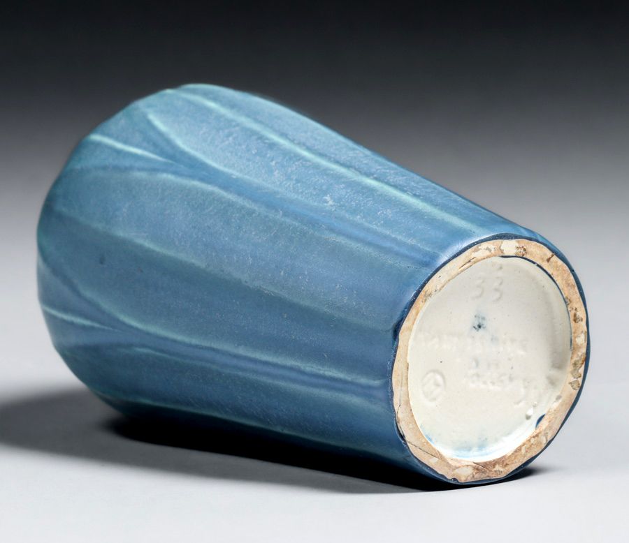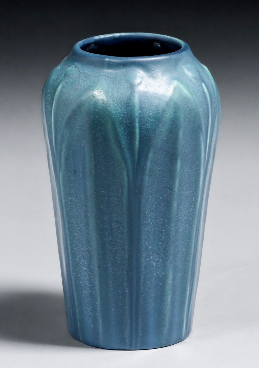 Hampshire Pottery Matte Blue Vase c1910. Signed. Perfect condition. 6.75"h x 3.75"d SOLD