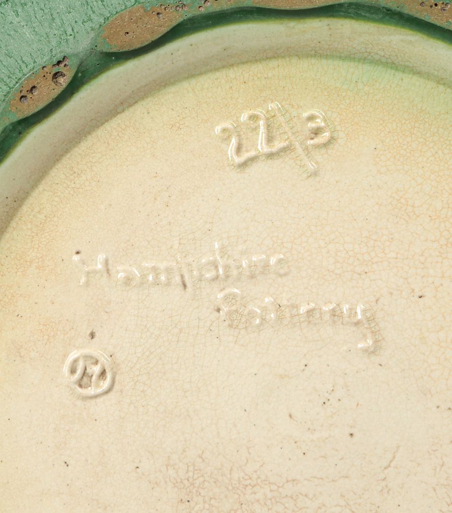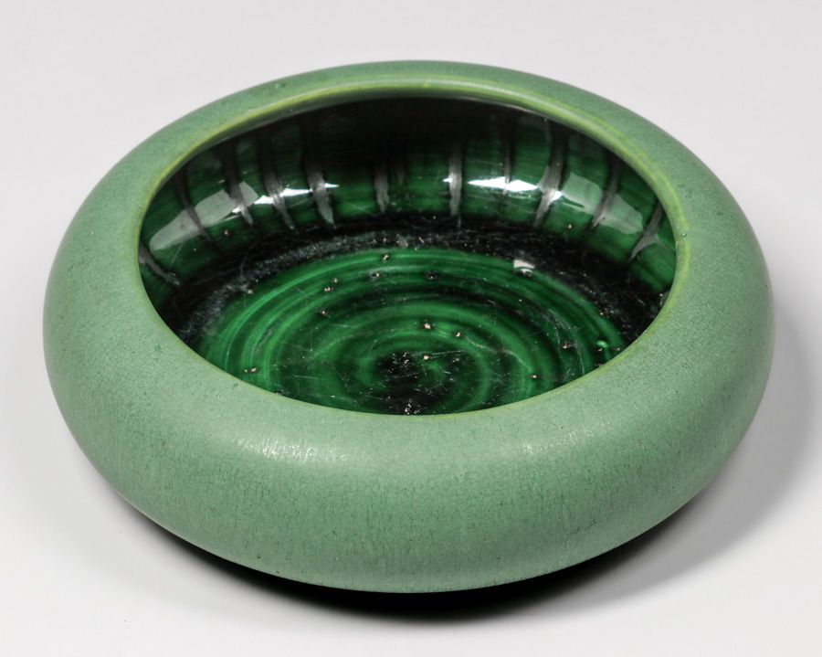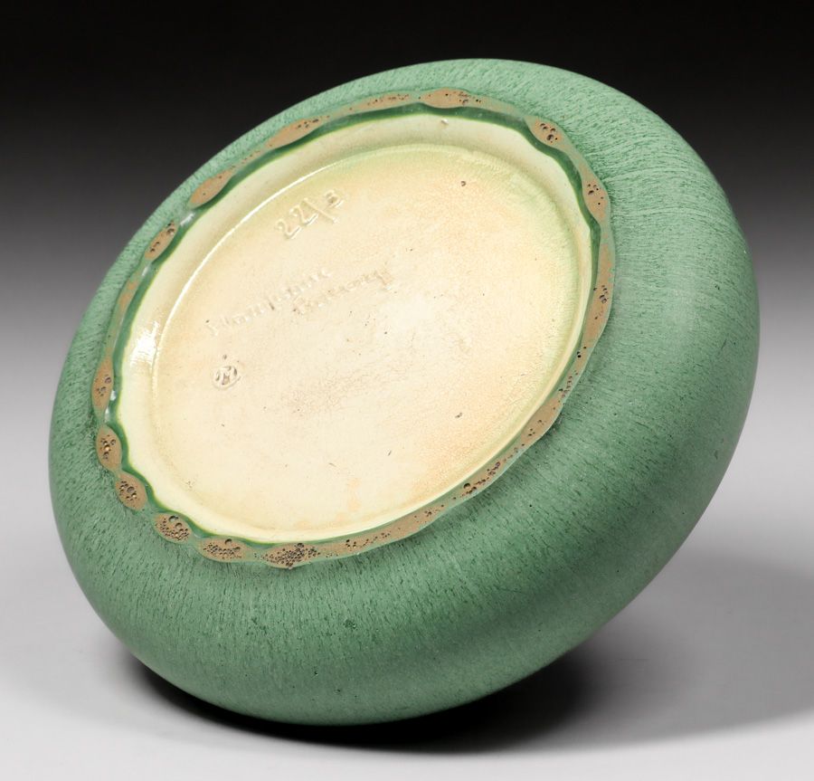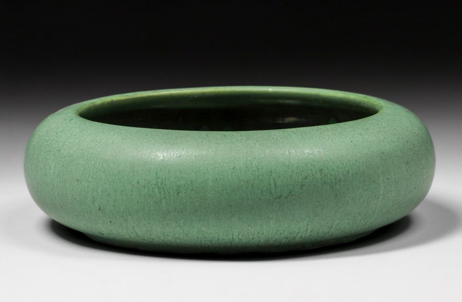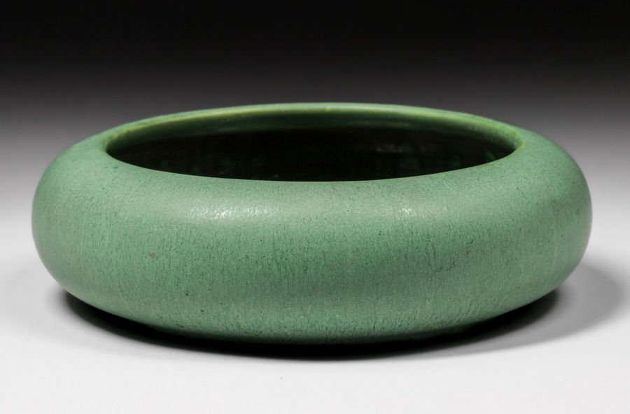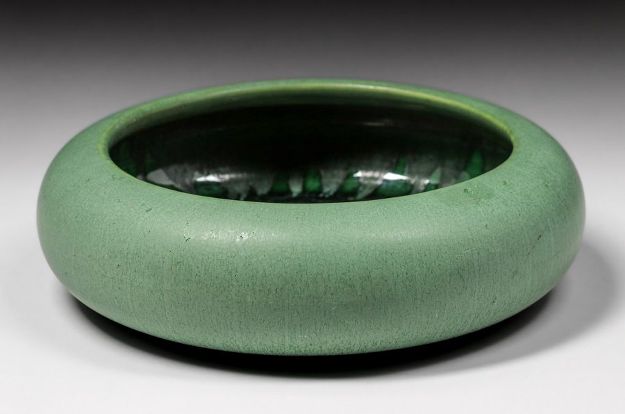 Hampshire Pottery Matte Green Bowl c1910. Signed. Perfect condition. 9 7/8"d x 3.25"h SOLD