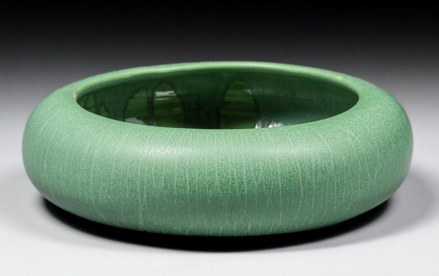 Hampshire Pottery Matte Green Bowl c1910. Signed. Perfect condition. 9.5"d x 2.75"d SOLD