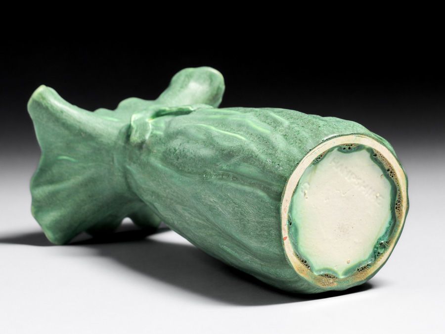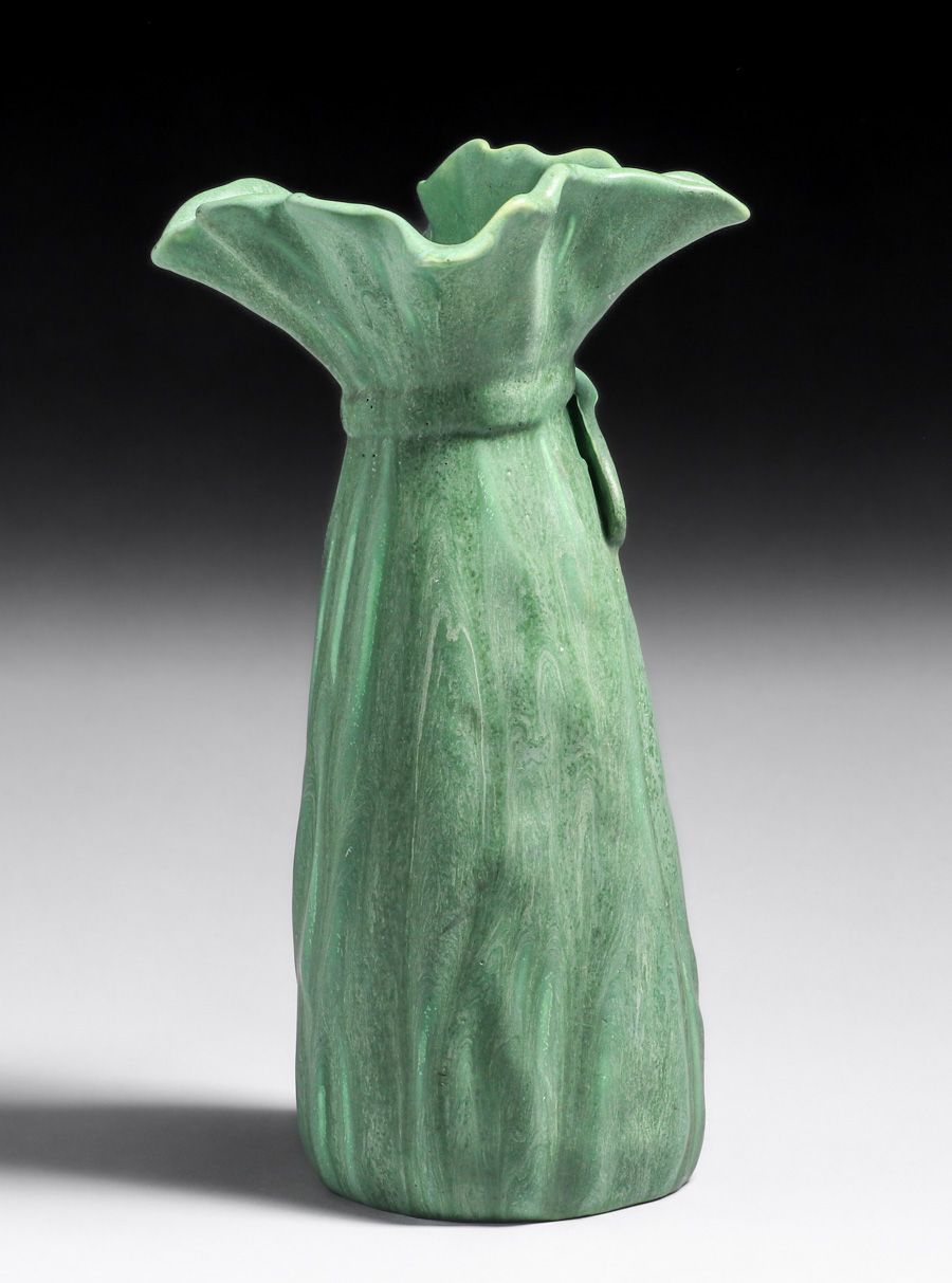 - Hampshire Pottery Matte Green Bowtie Flared Vase c1910
