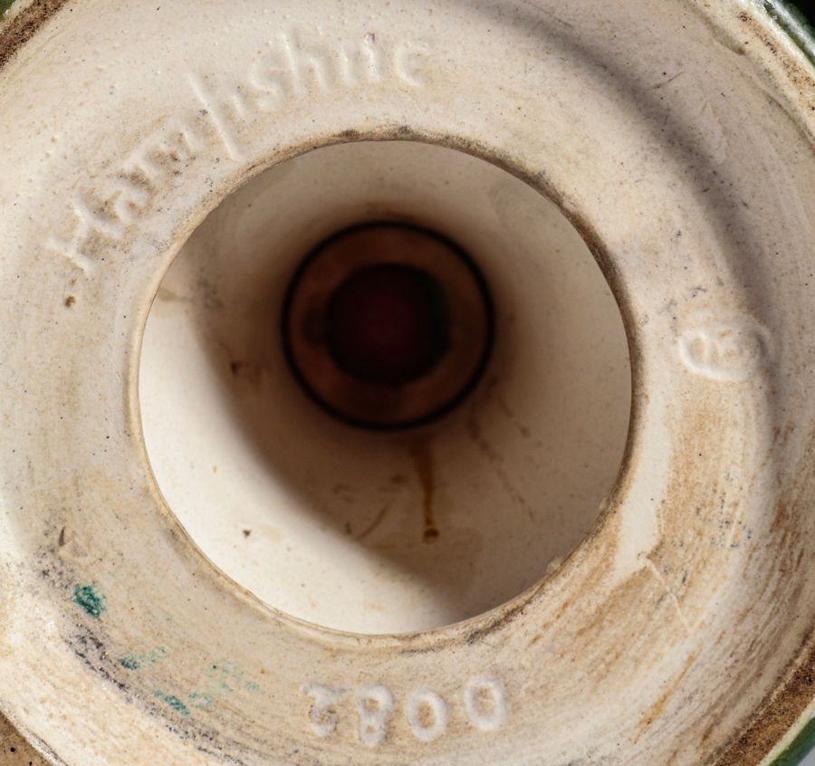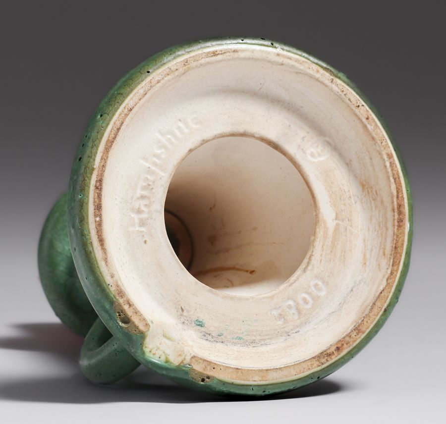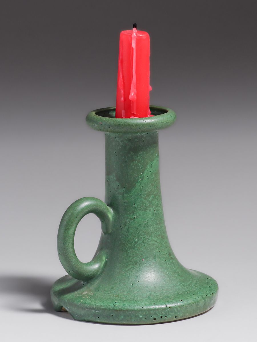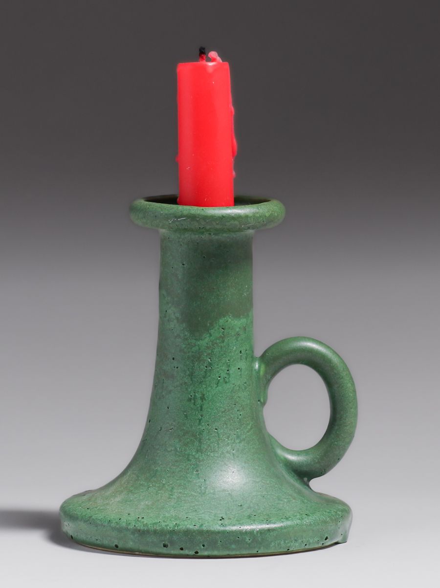- Hampshire Pottery Matte Green Loop Handle Candlestick c1910