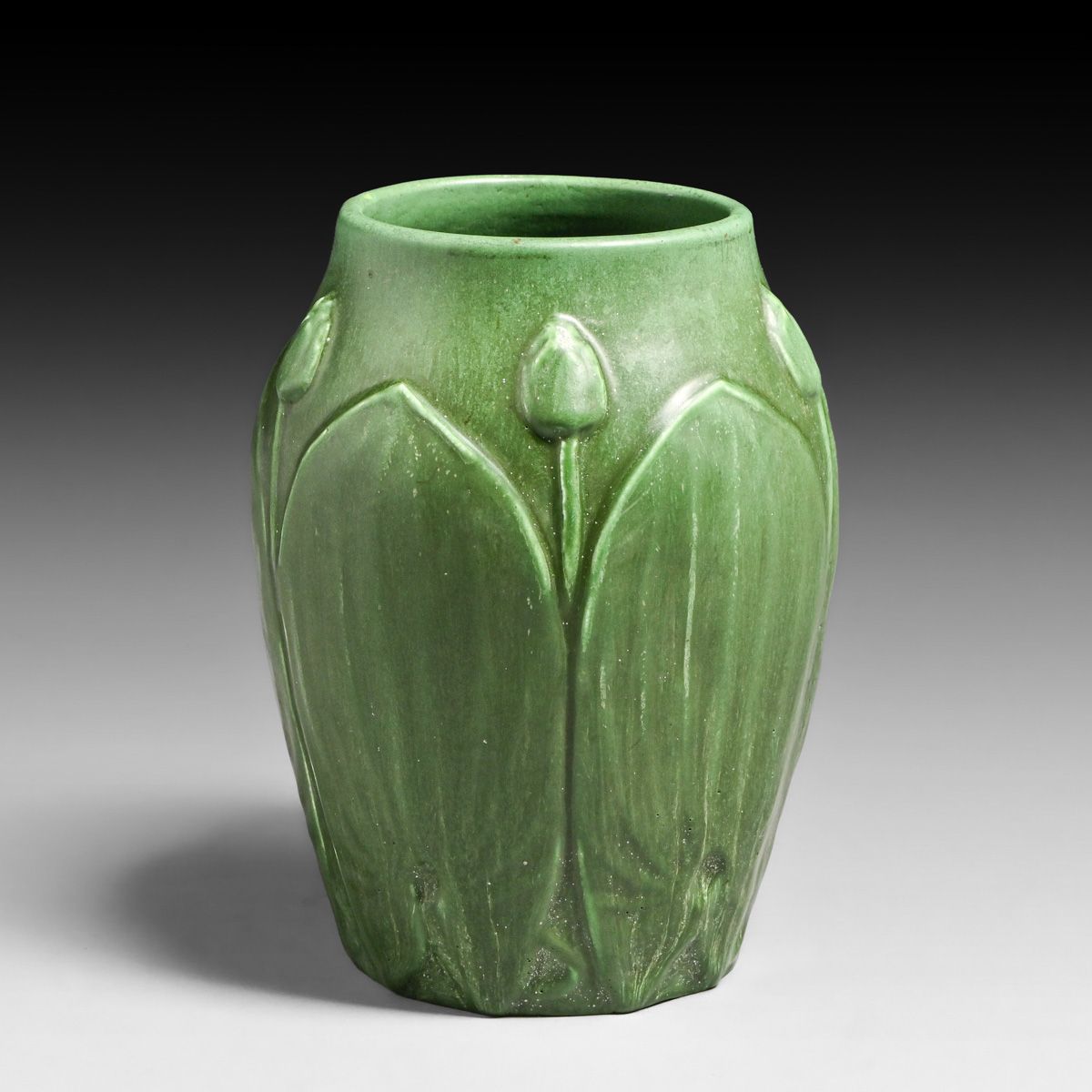 - Hampshire Pottery Matte Green Tulip Vase c1910