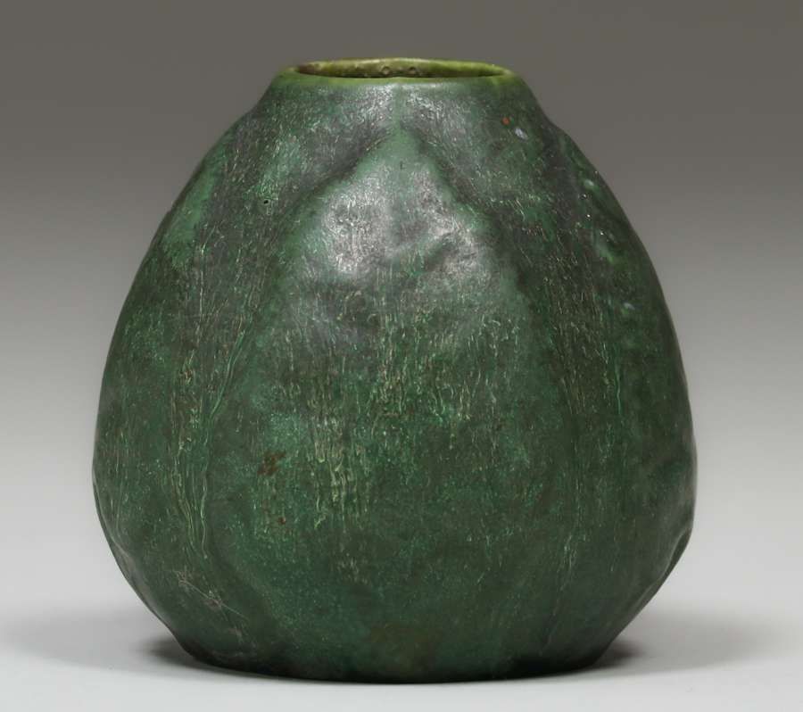 Hampshire Pottery Matte Green Vase c1910. Signed. A couple of glaze bubbles, otherwise perfect condition. 3.5"h x 3.25"d SOLD