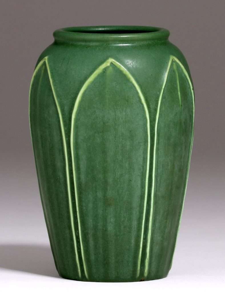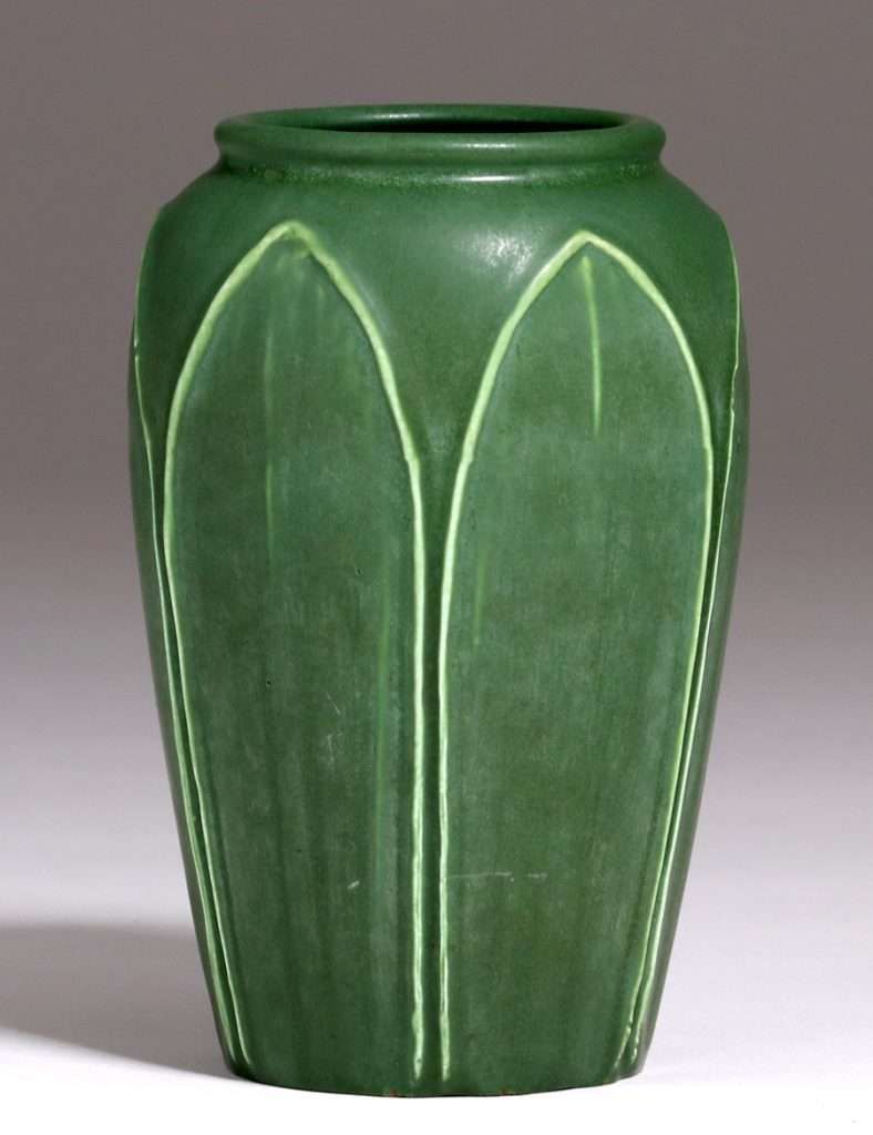Hampshire Pottery Matte Green Vase c1910. Signed. Perfect condition. 7.5"h x 5.5"d SOLD
