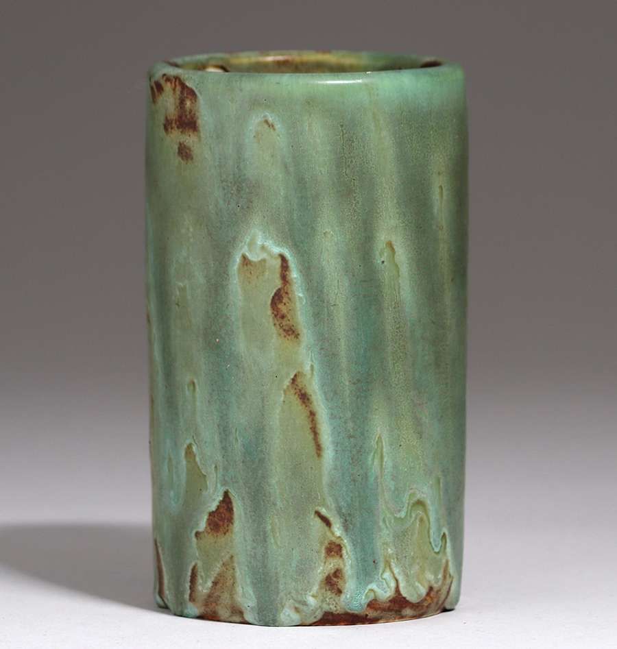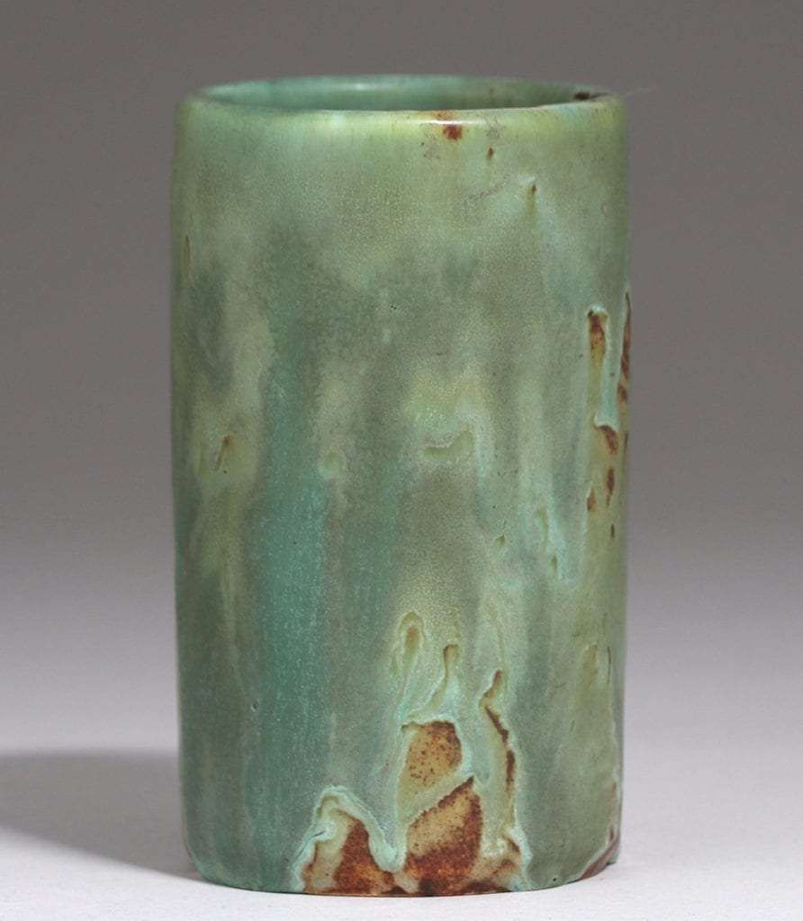 - Hampshire Pottery Mottled Green Cylinder Vase