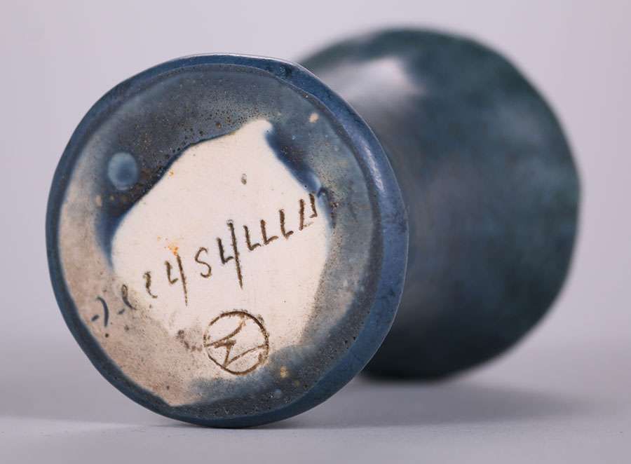 Small Hampshire matte blue vase. Perfect condition. 3"h x 2"d SOLD