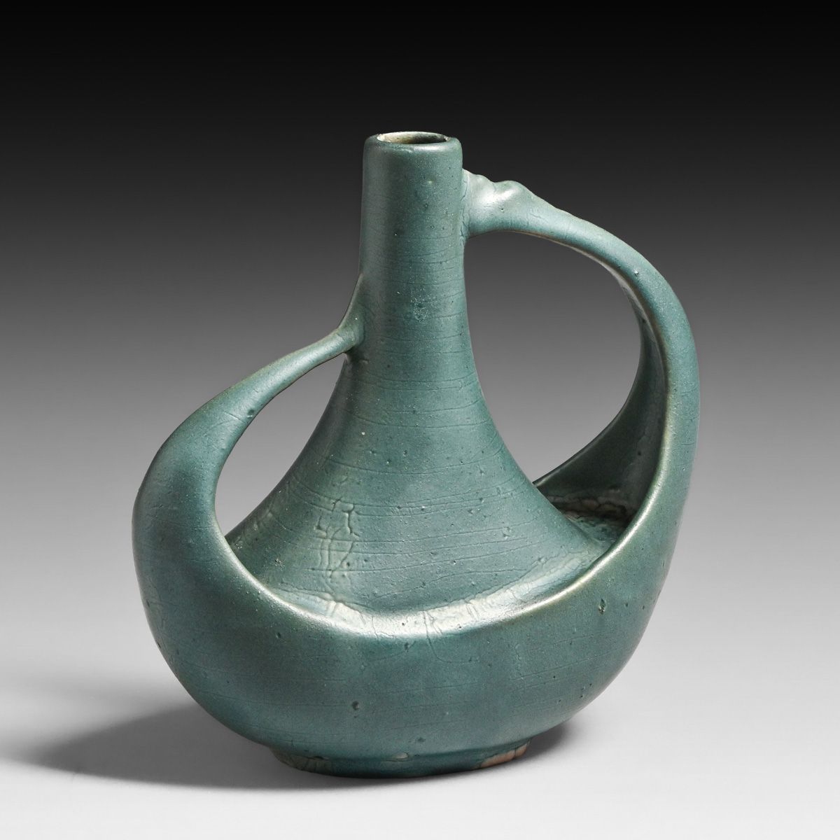 - Unusual Hampshire Pottery Matte Blue Two-Handled Vase c1910