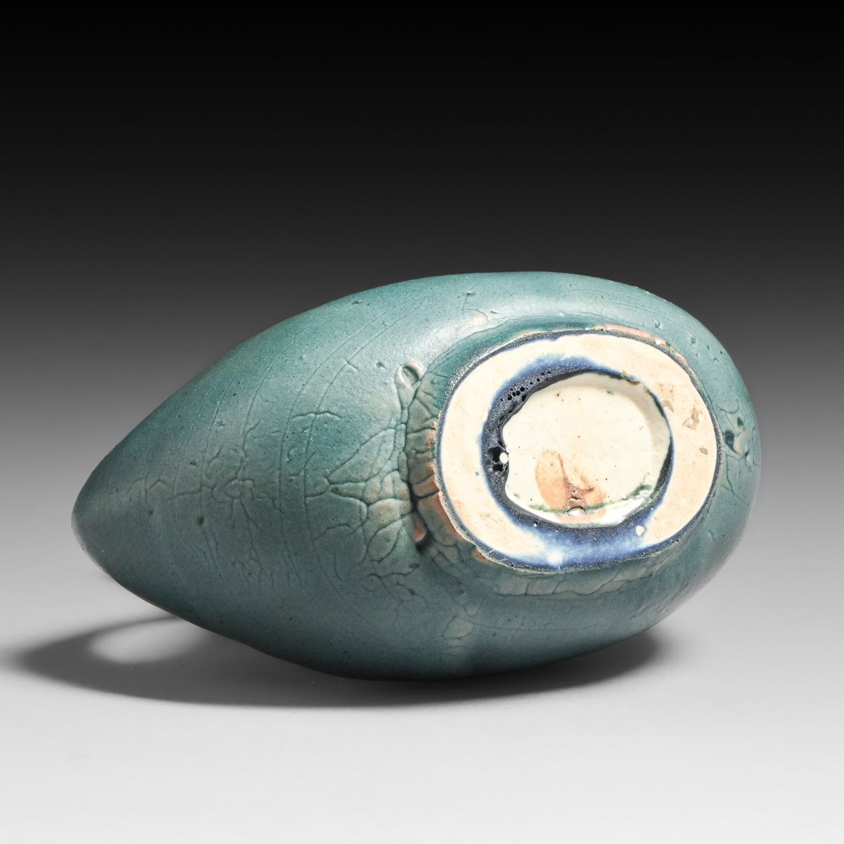 Unusual Hampshire Pottery Matte Blue Two-Handled Vase c1910. Signed. Perfect condition. 6.25"h x 6"w