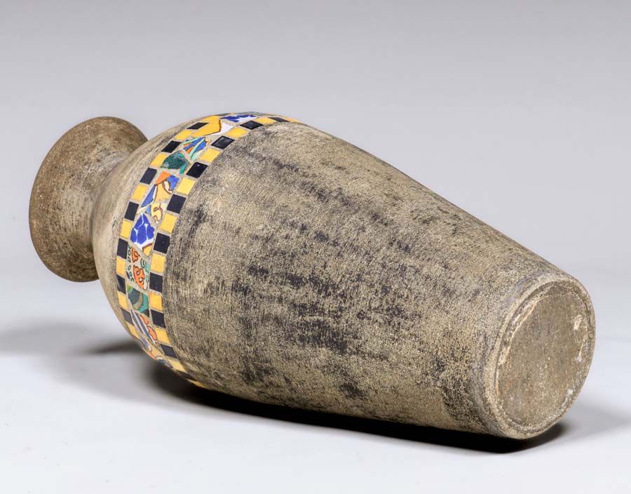 - Hillside Pottery Tiled Cement Garden Vase c1920s