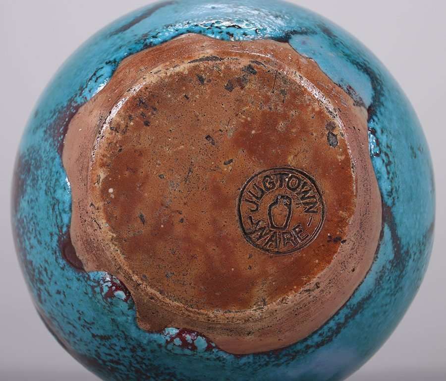 Jugtown Pottery vase with Chinese Blue glaze. Signed. Perfect condition. 6.25"h x 4.5"d SOLD