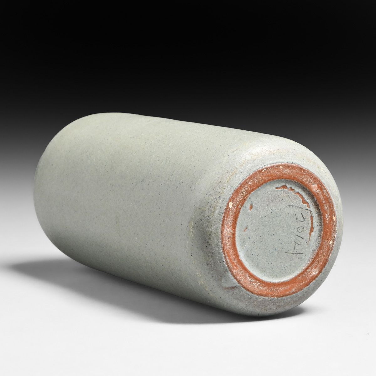 Large Marblehead Pottery Matte Grey Cylinder Vase c1910. Glazed over signature. Perfect condition. 9"h x 3.75"d