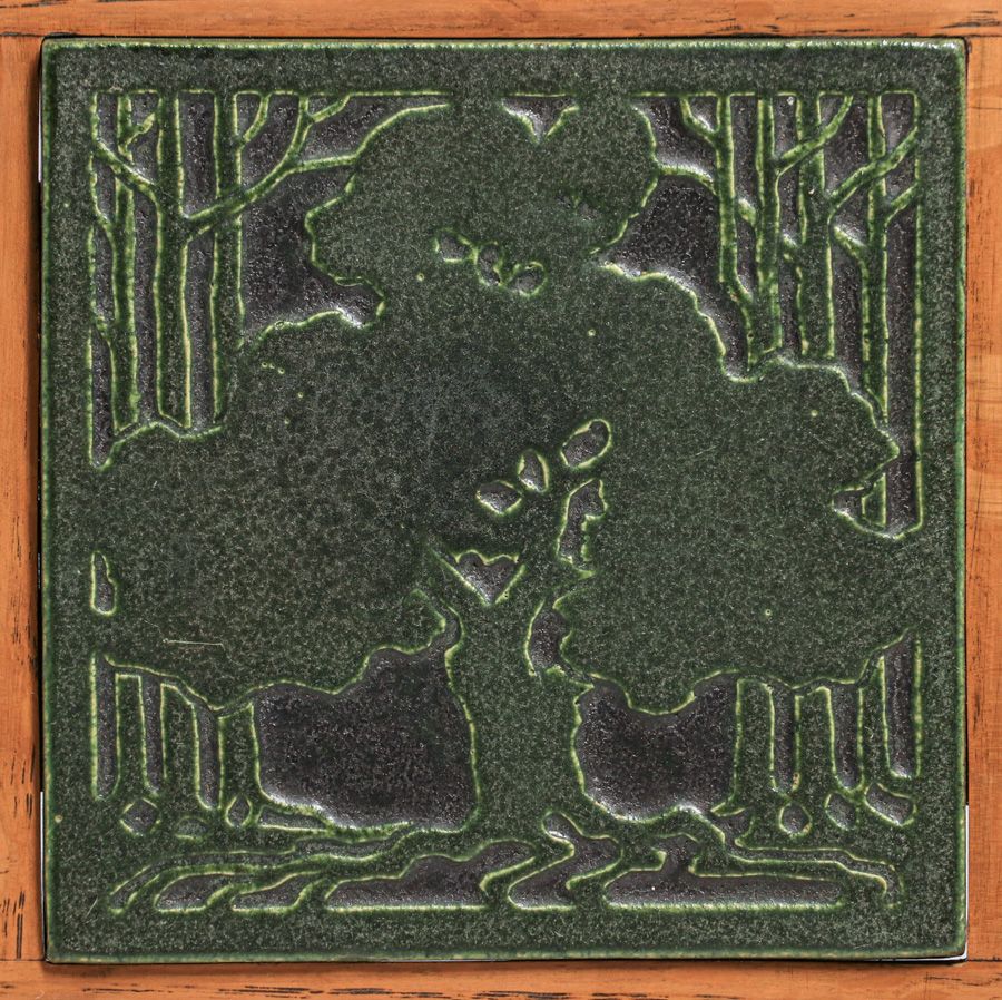 - Marblehead Arthur Baggs Carved Matte Green Oak Tree Tile c1908