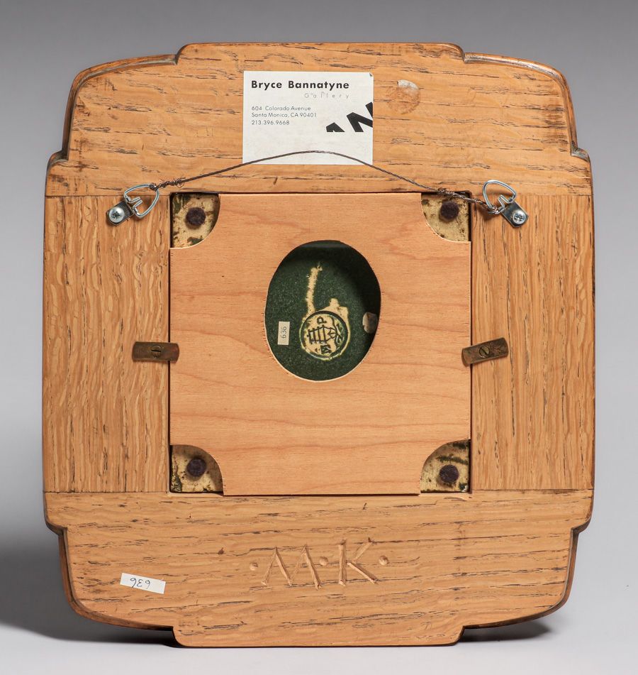 Marblehead Arthur Baggs Carved Matte Green Oak Tree Tile c1908. Signed. Very nice Greene & Greene style frame. Perfect condition. Frame 13"h x 11 5/8"wTile 6.25″ x 6.25″ SOLD