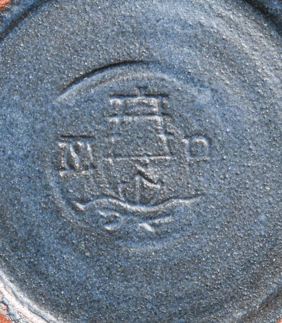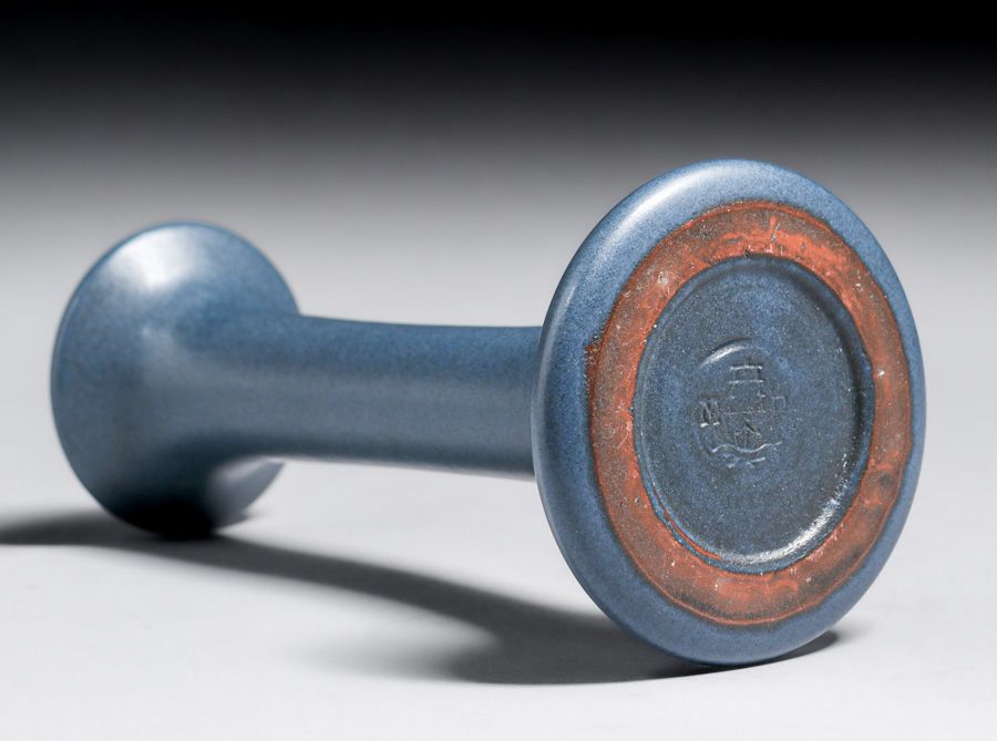 Marblehead Pottery Matte Blue Candlestick c1910. Signed. Perfect condition. 7"h x 3"d SOLD
