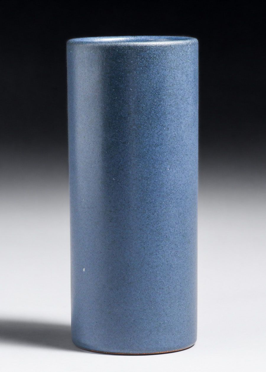 - Marblehead Pottery Matte Blue Cylinder Vase c1910