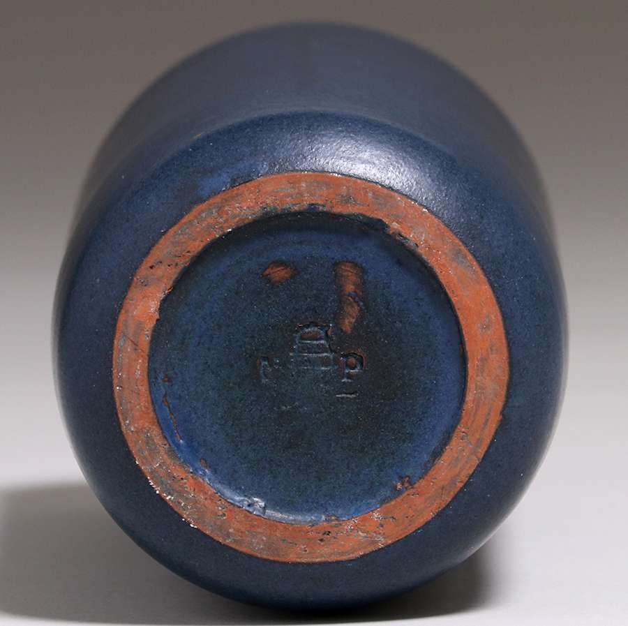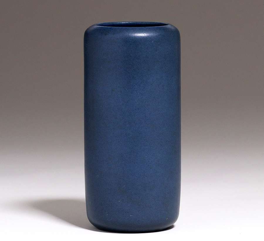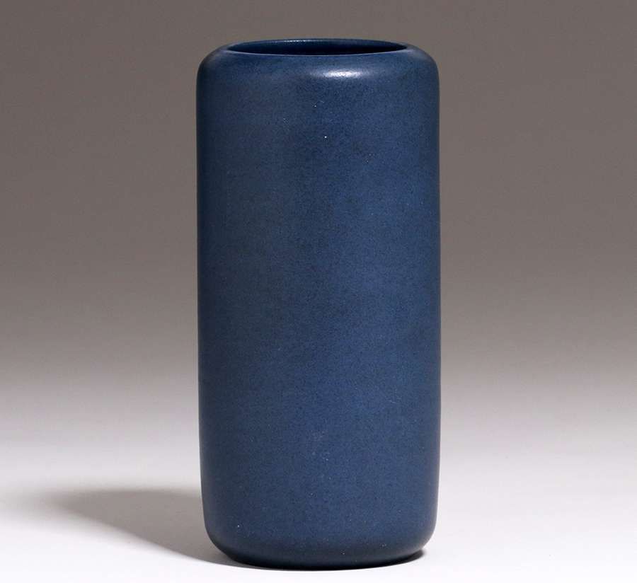 - Marblehead Pottery Matte Blue Cylinder Vase c1910