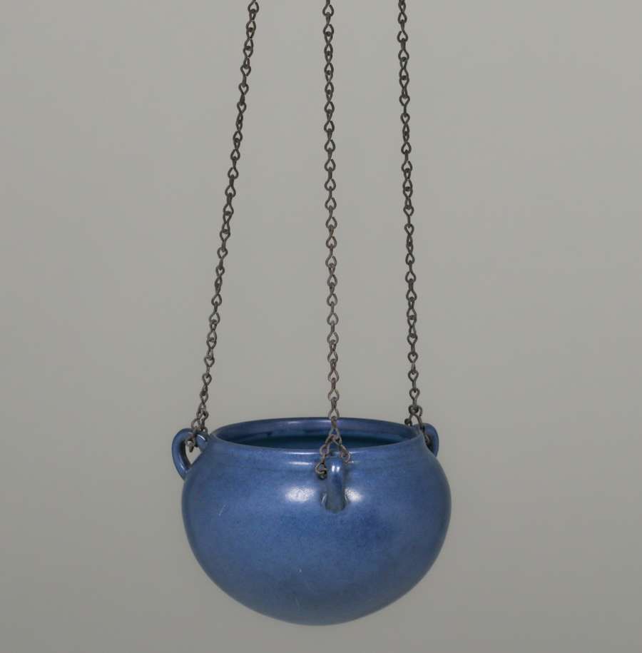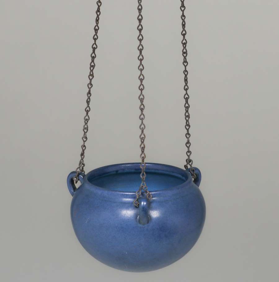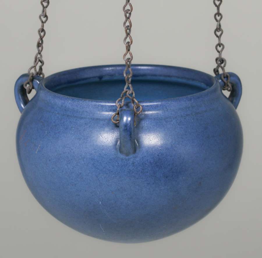 - Marblehead Pottery Matte Blue Hanging Basket c1910s
