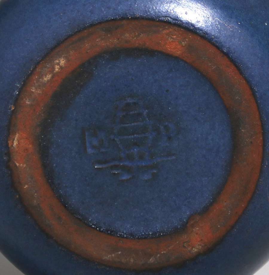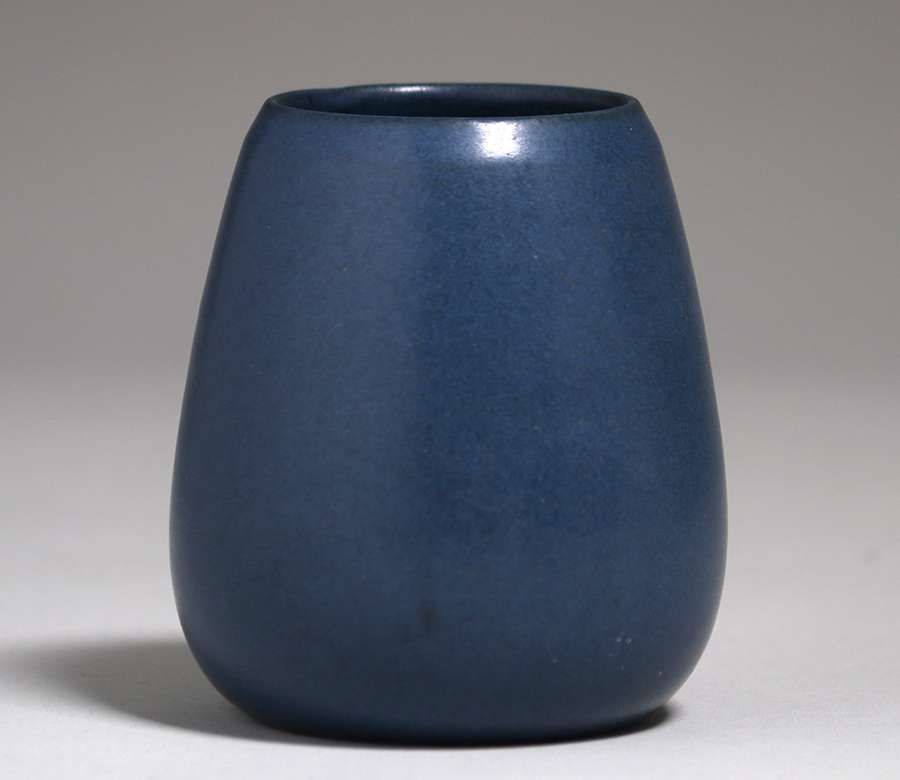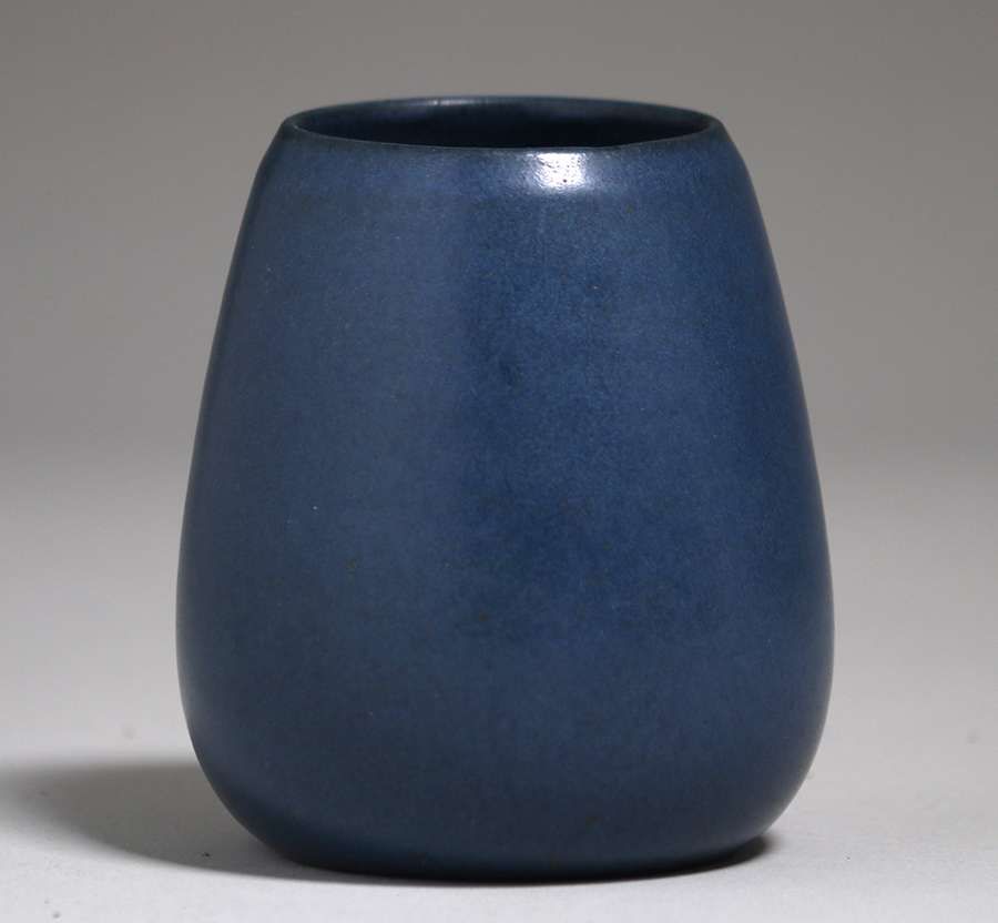 Marblehead Pottery matte blue tapered vase. Signed. Perfect condition. 3.5"h x 3"d SOLD