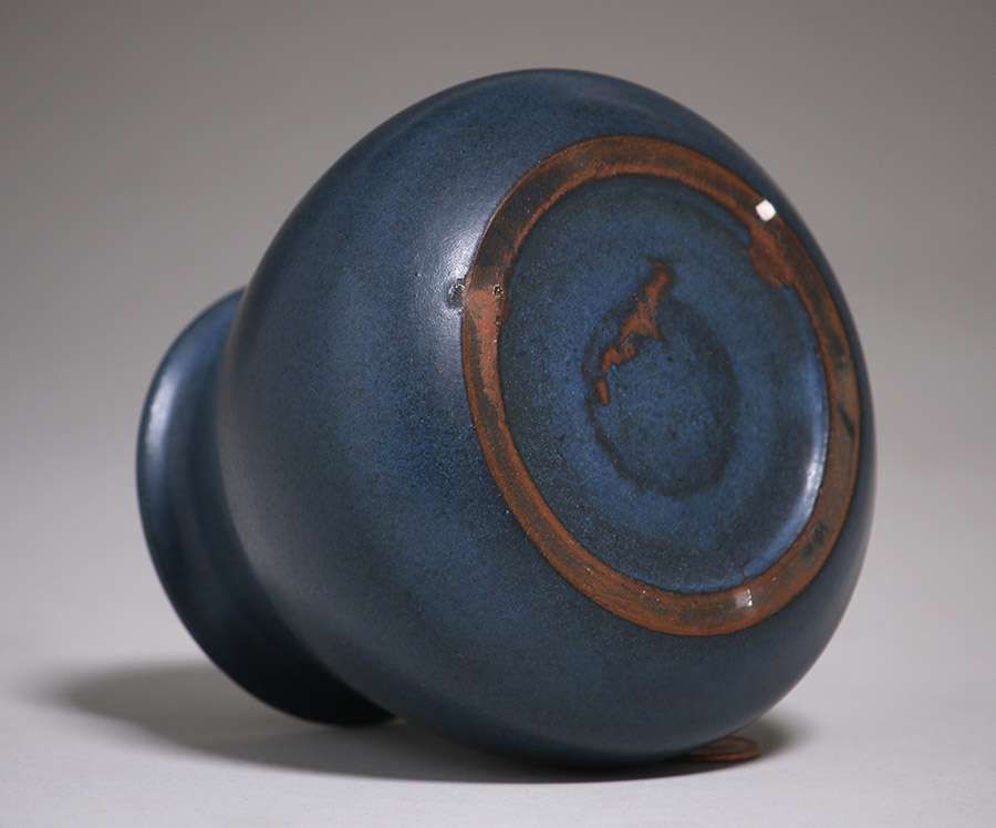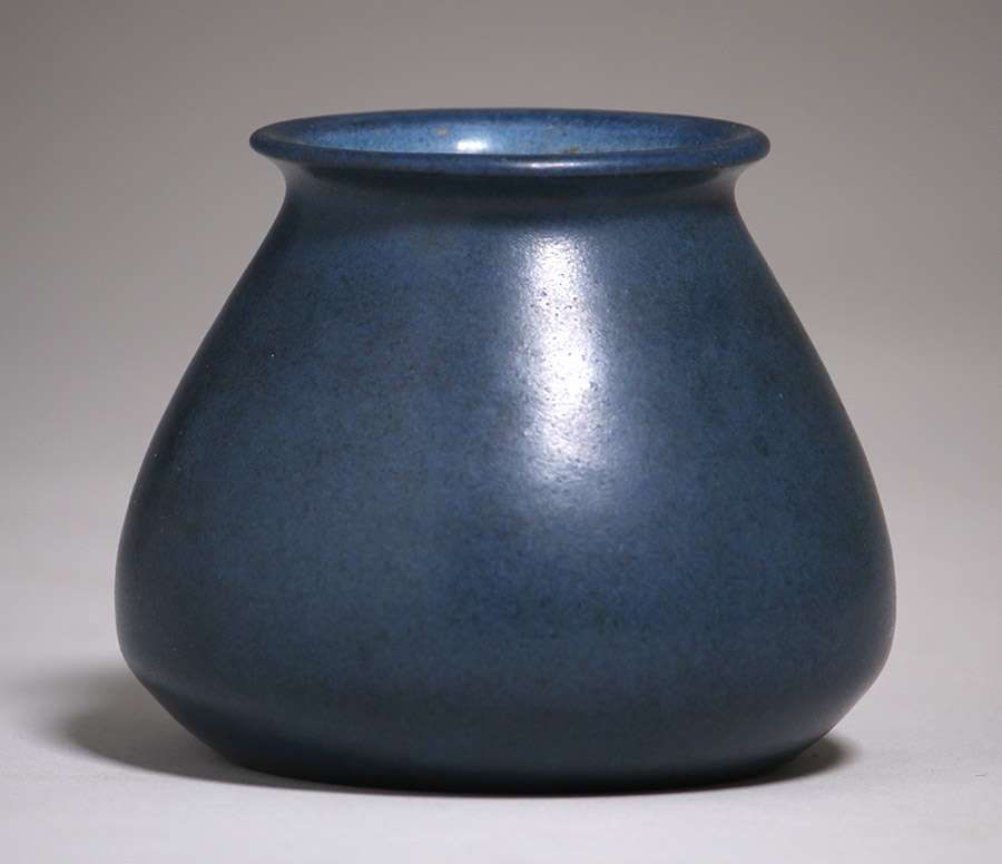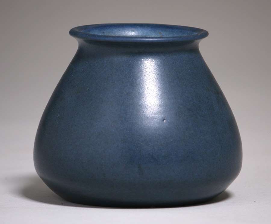 Marblehead Pottery matte blue vase c1910. Glazed over signature. Perfect condition. 3.5"h SOLD