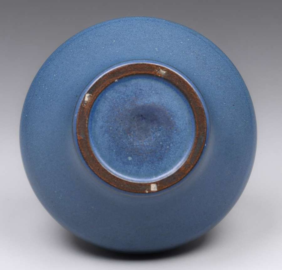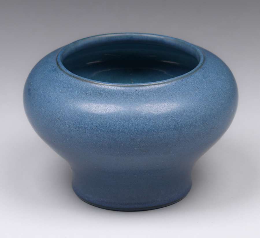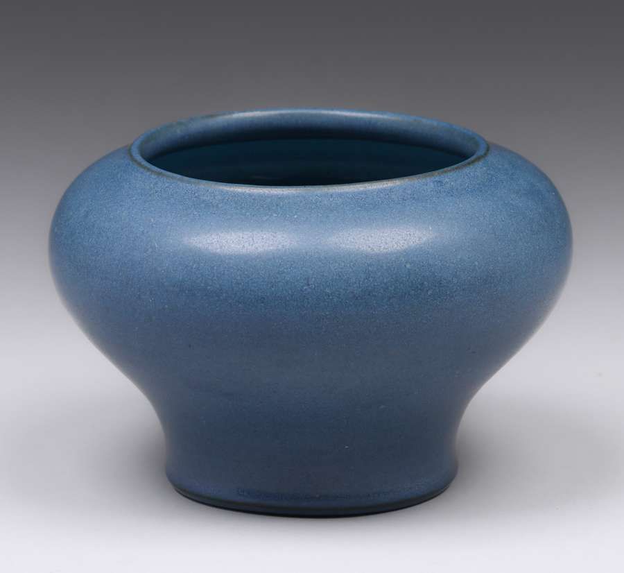 Marblehead Pottery Matte Blue Vase c1910. Signed. Flea bite to rim, otherwise perfect condition. 5.25"d x 3.75"h SOLD