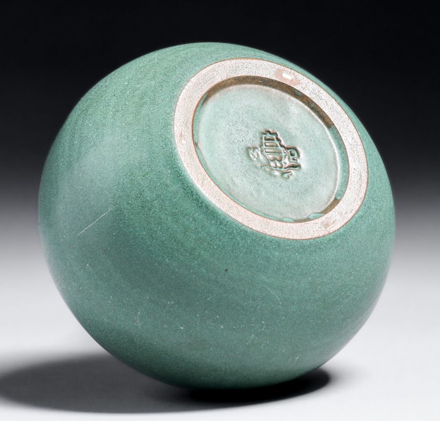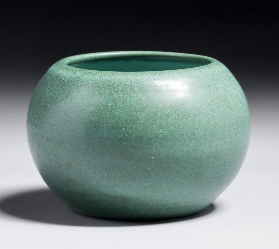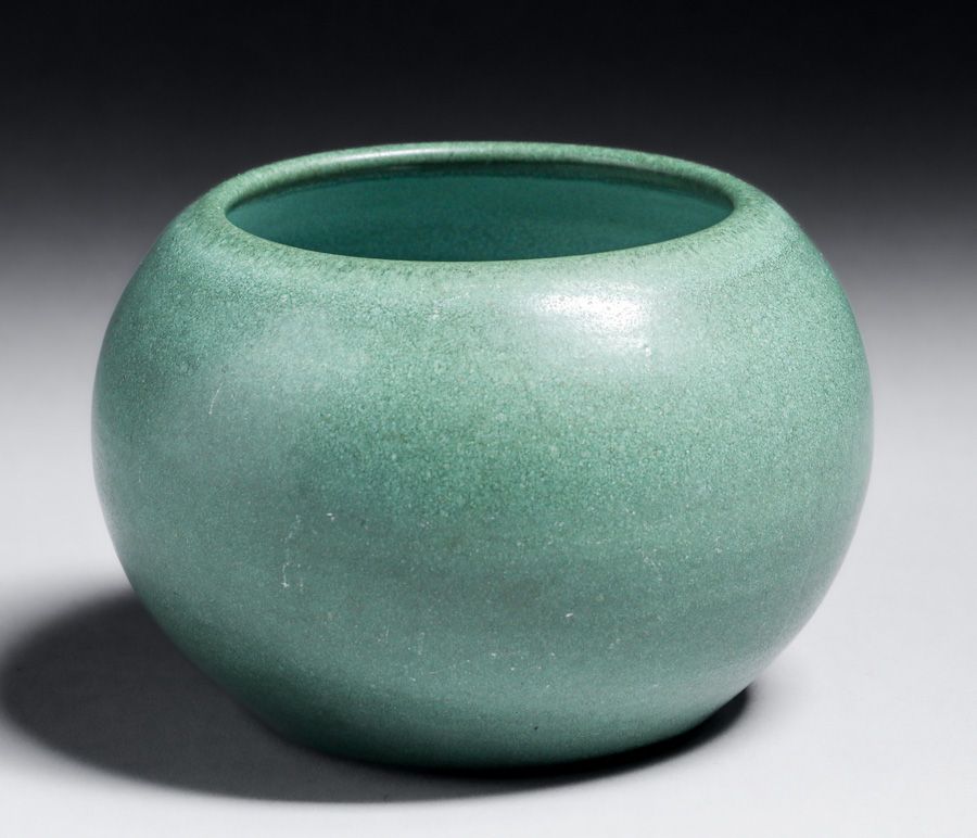 - Marblehead Pottery Matte Green Closed Bowl c1910