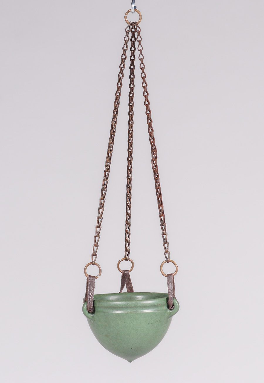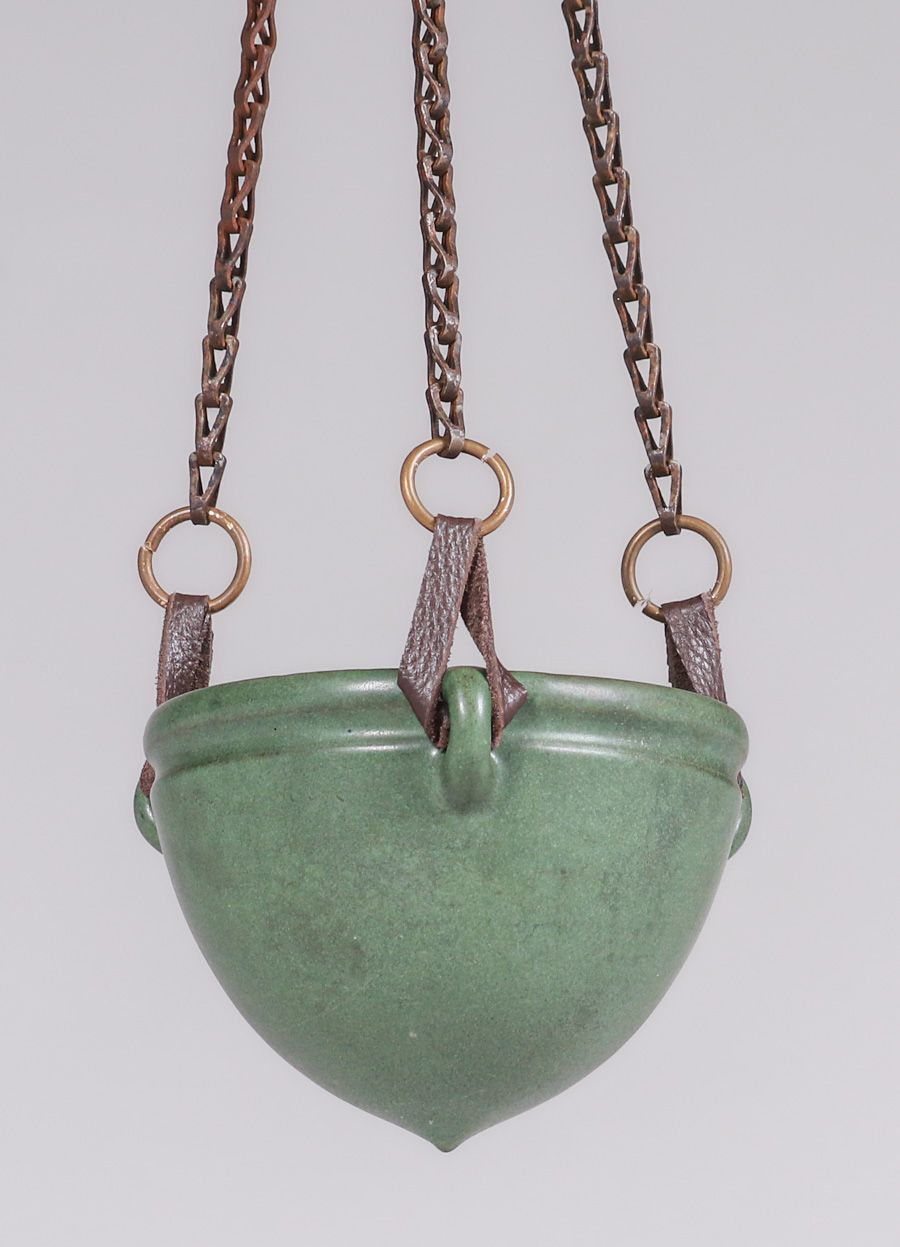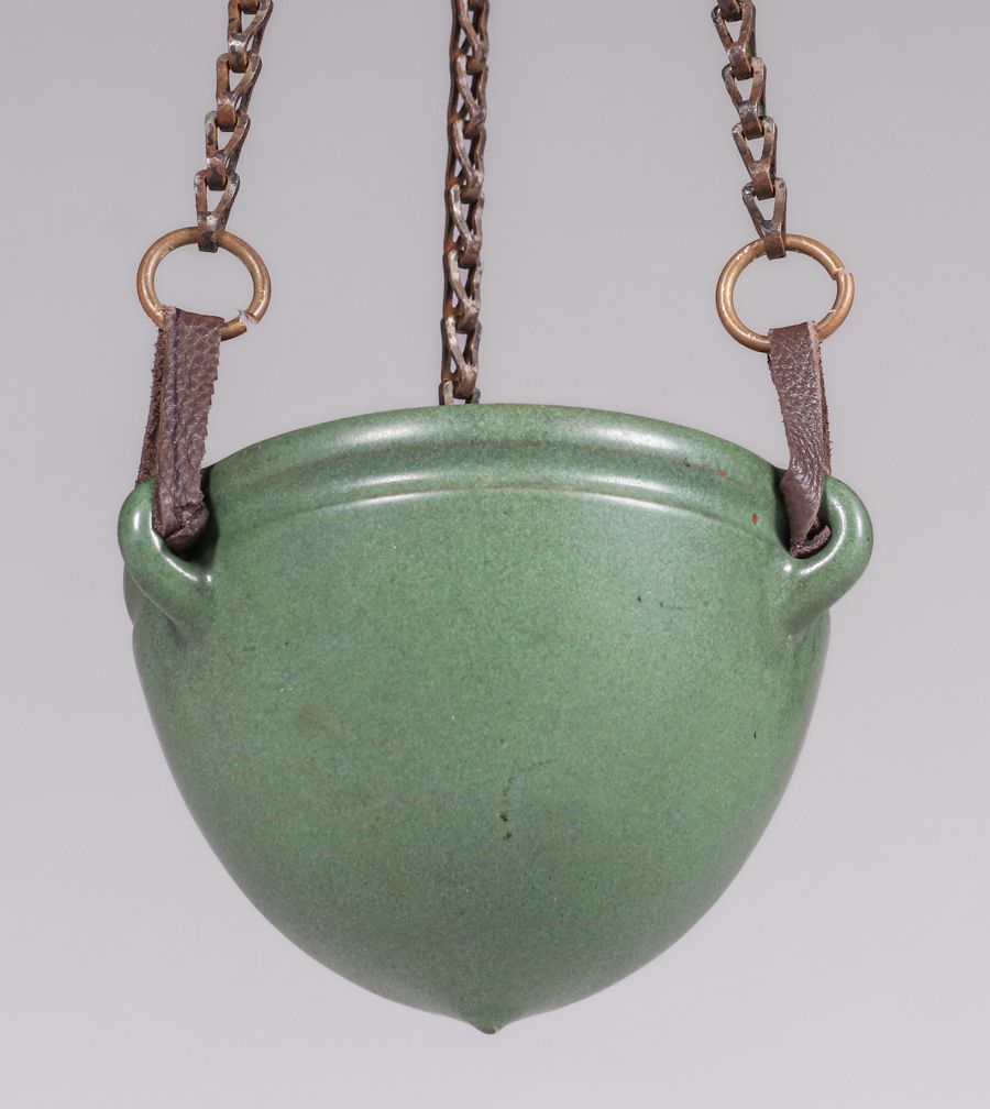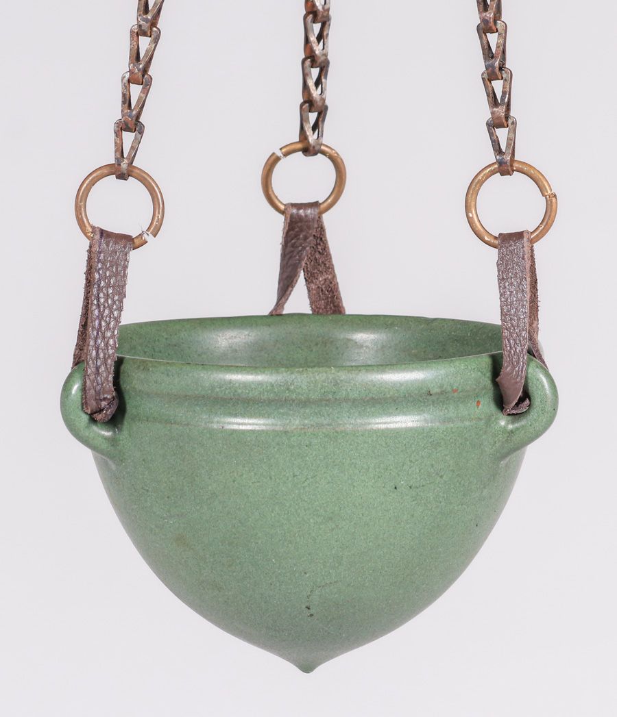 - Marblehead Pottery Matte green Hanging Basket c1910