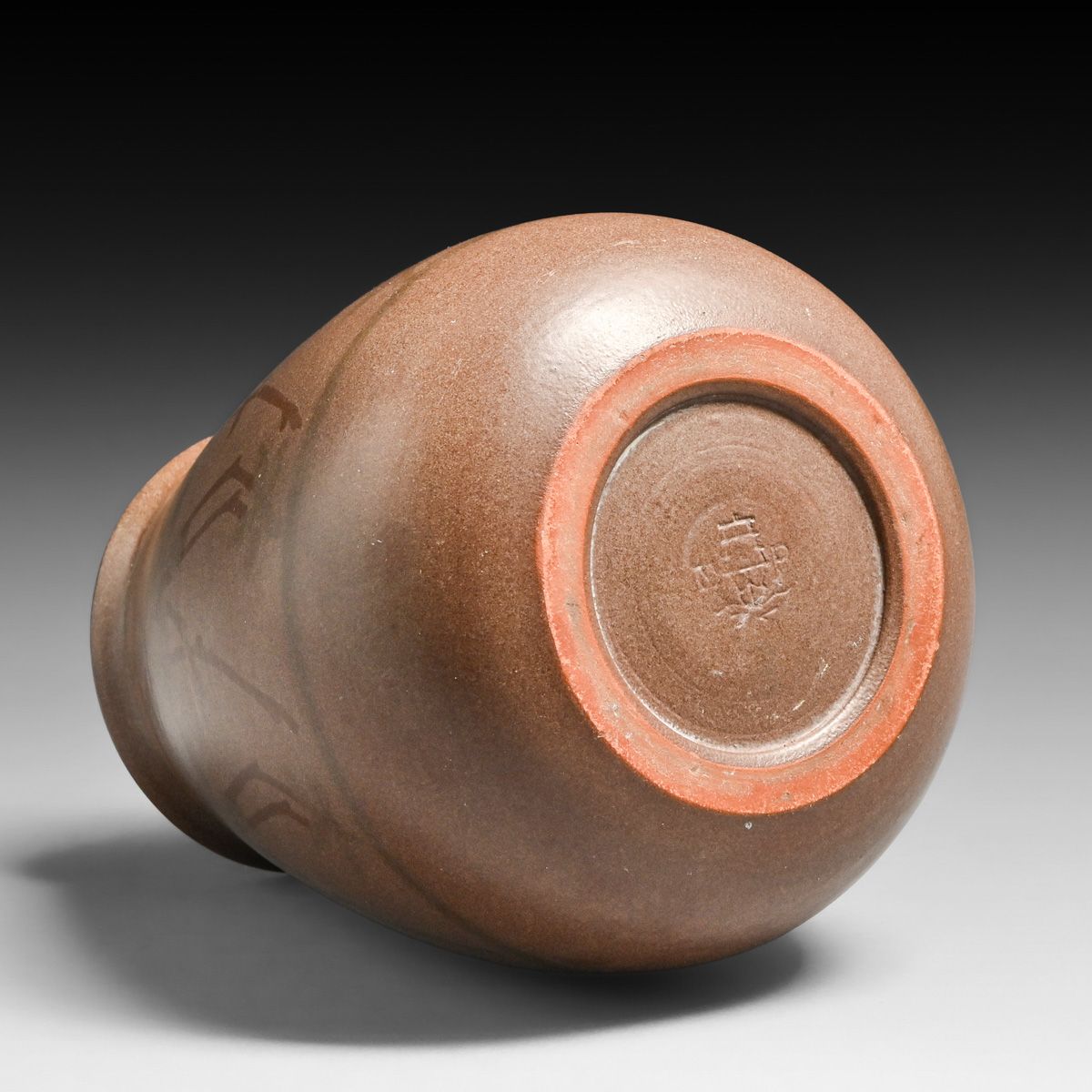 Marblehead Pottery Stylized Vines Decorated Vase c1910. Signed. Invisible professional restoration to rim. 6 3/8"h x 4.75"d