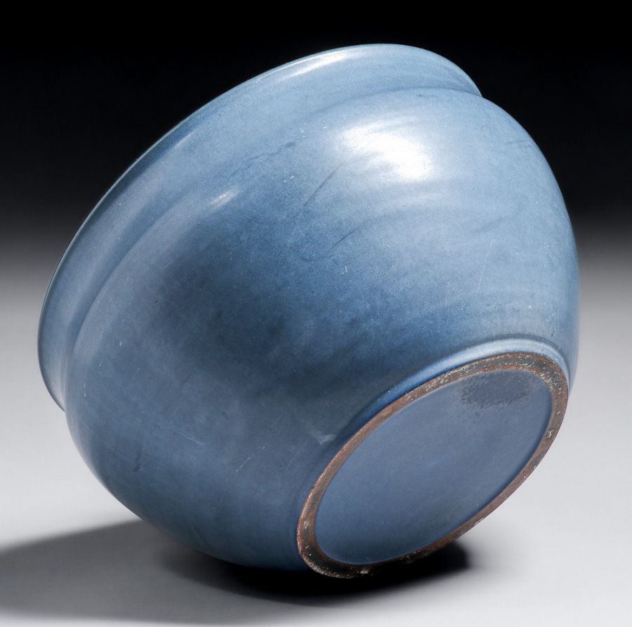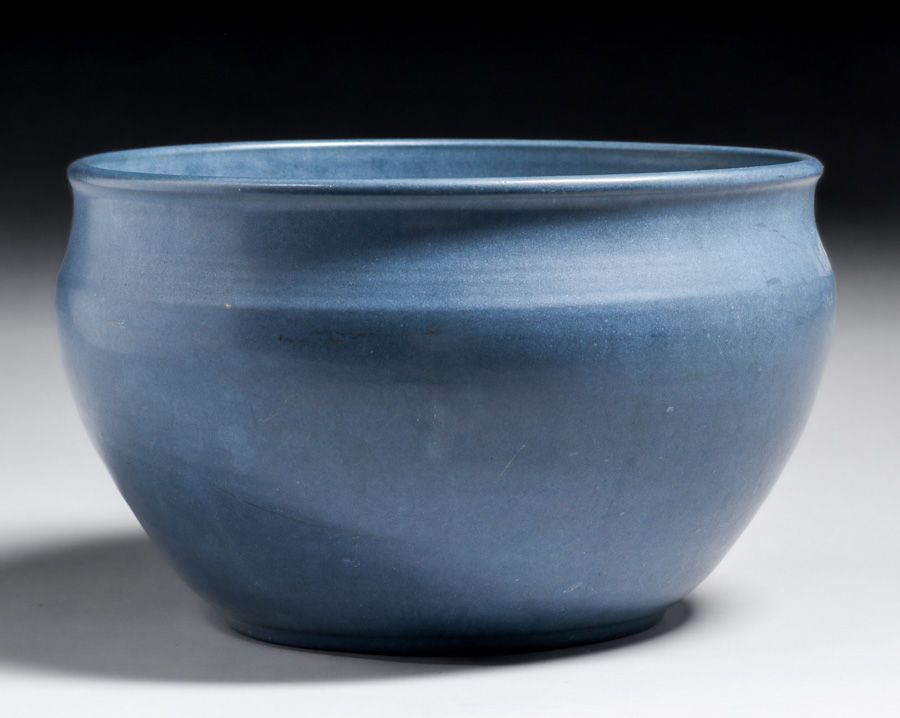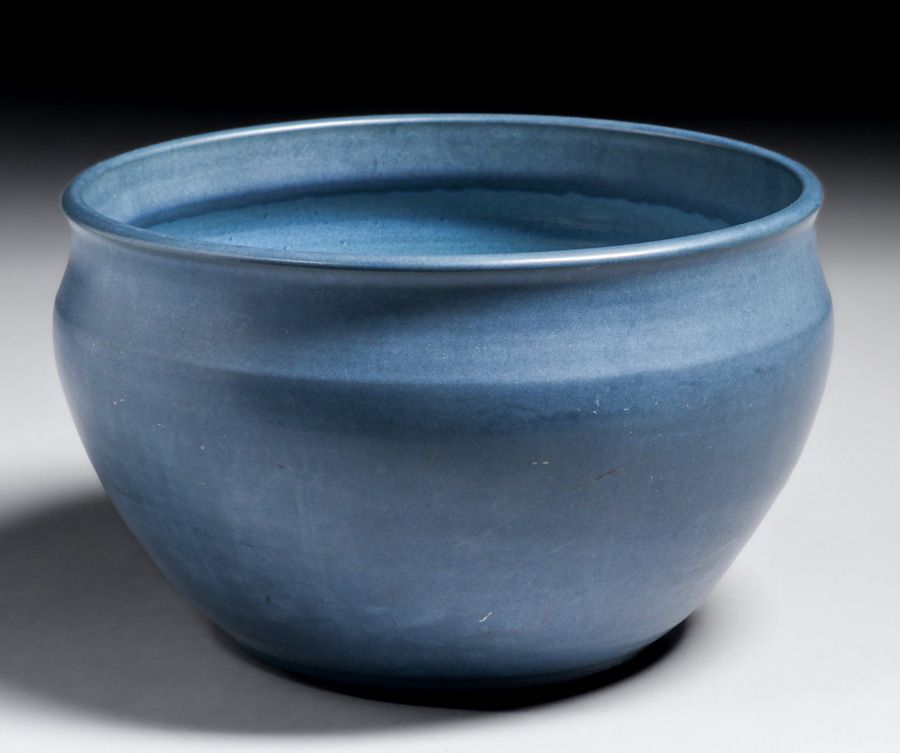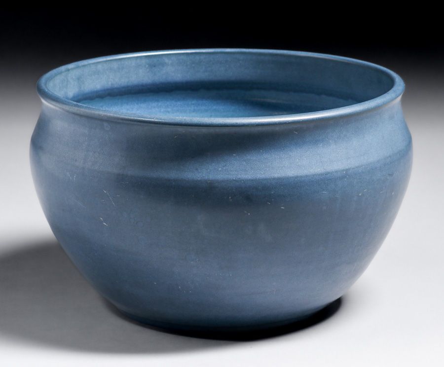 Massive Marblehead Pottery Matte Blue Jardiniere c1910. Signed. Perfect condition. 11.5"d x 7"h SOLD