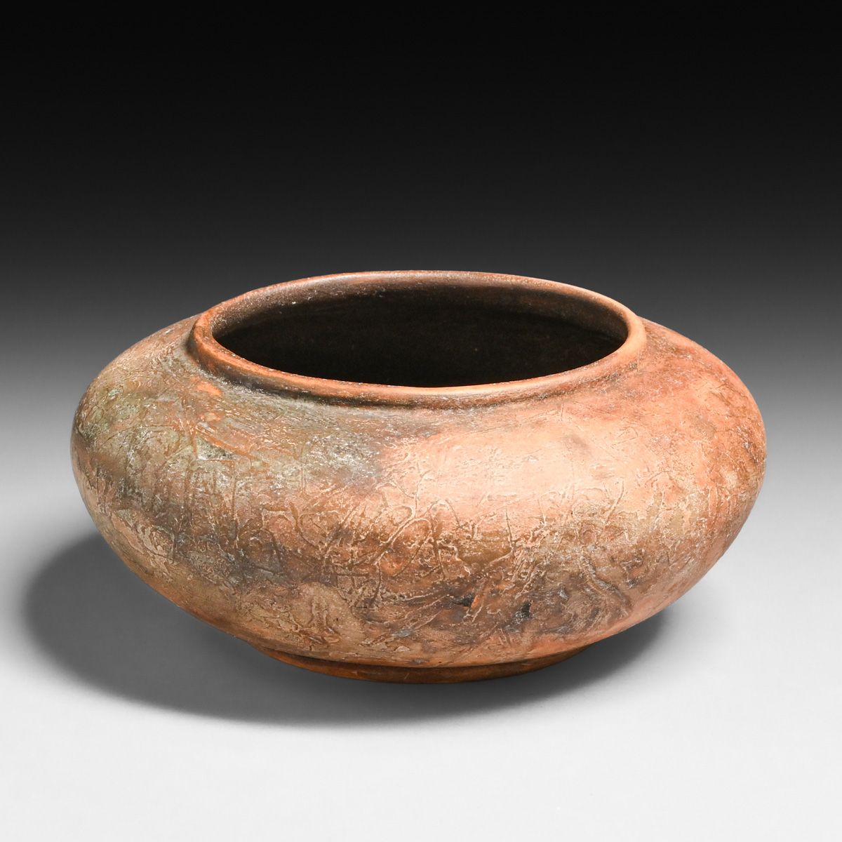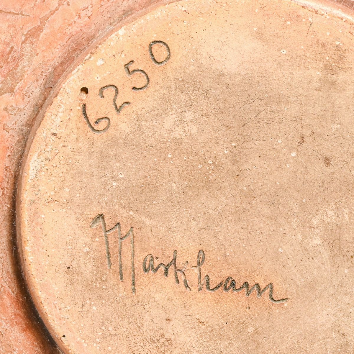 Markham Pottery – (National City, CA) #6250 Reseau Vase c1913. Markham Pottery moved from Ann Arbor, MI to National City, CA in 1913. All Markham pieces were numbered with pieces above 6000 being attributed to National City. This vase dates to about 1913-1914 and has an exquisite deep texture. Perfect condition. 6.5"d x 3.5"h