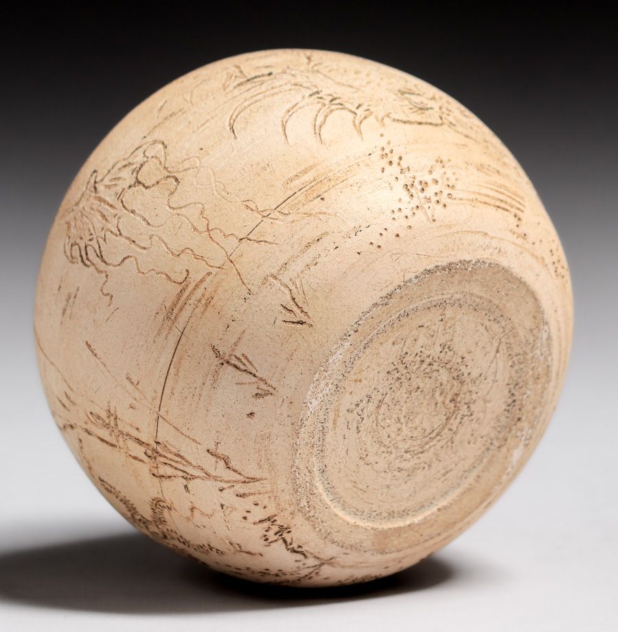 Martin Brothers Carved Bisque Fish Vase 1899. Signed. Perfect condition. 3 3/8"d x 2.5"h SOLD