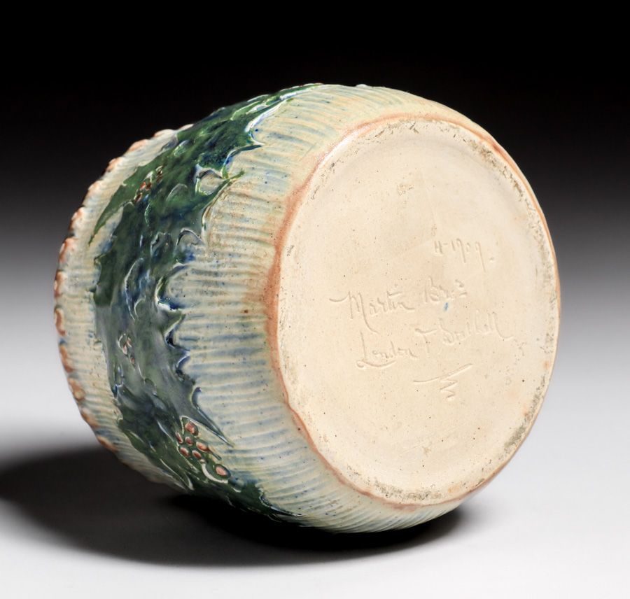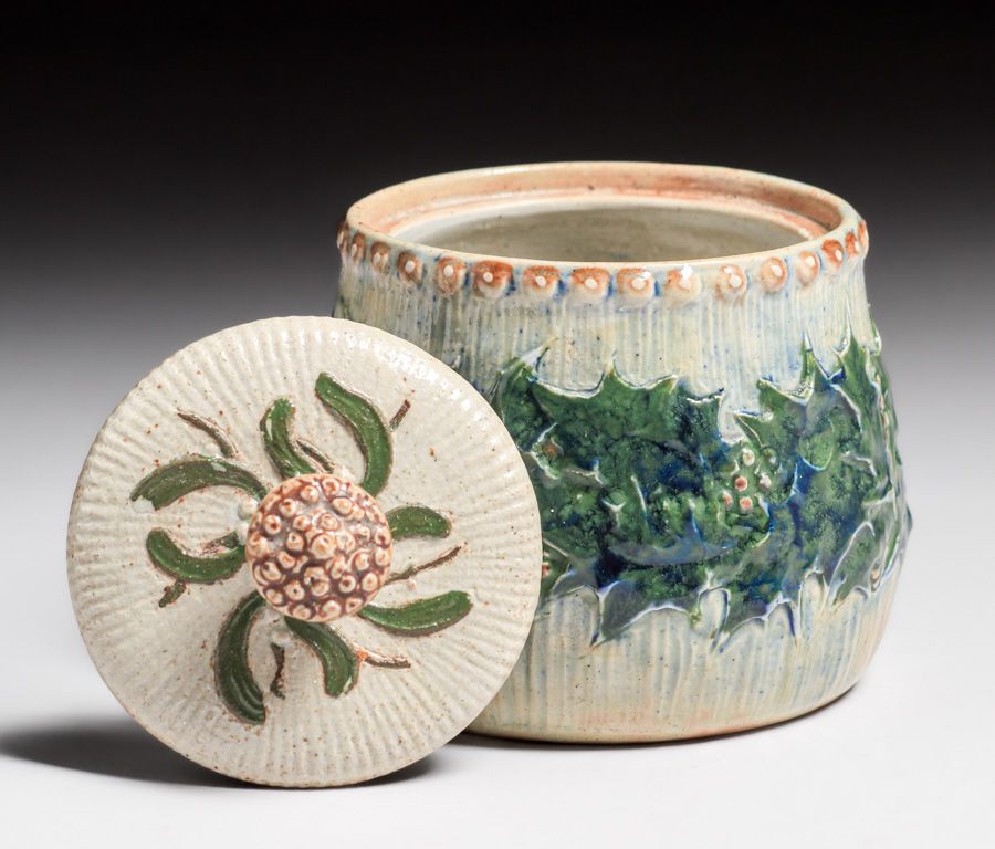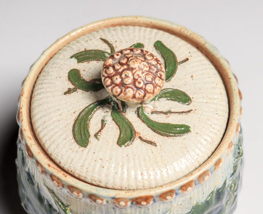 - Martin Brothers Oak Leaves & Acorn Finial Covered Vase 1909