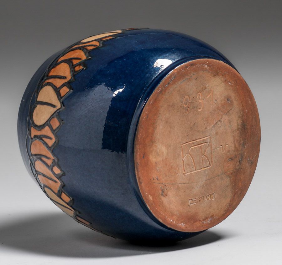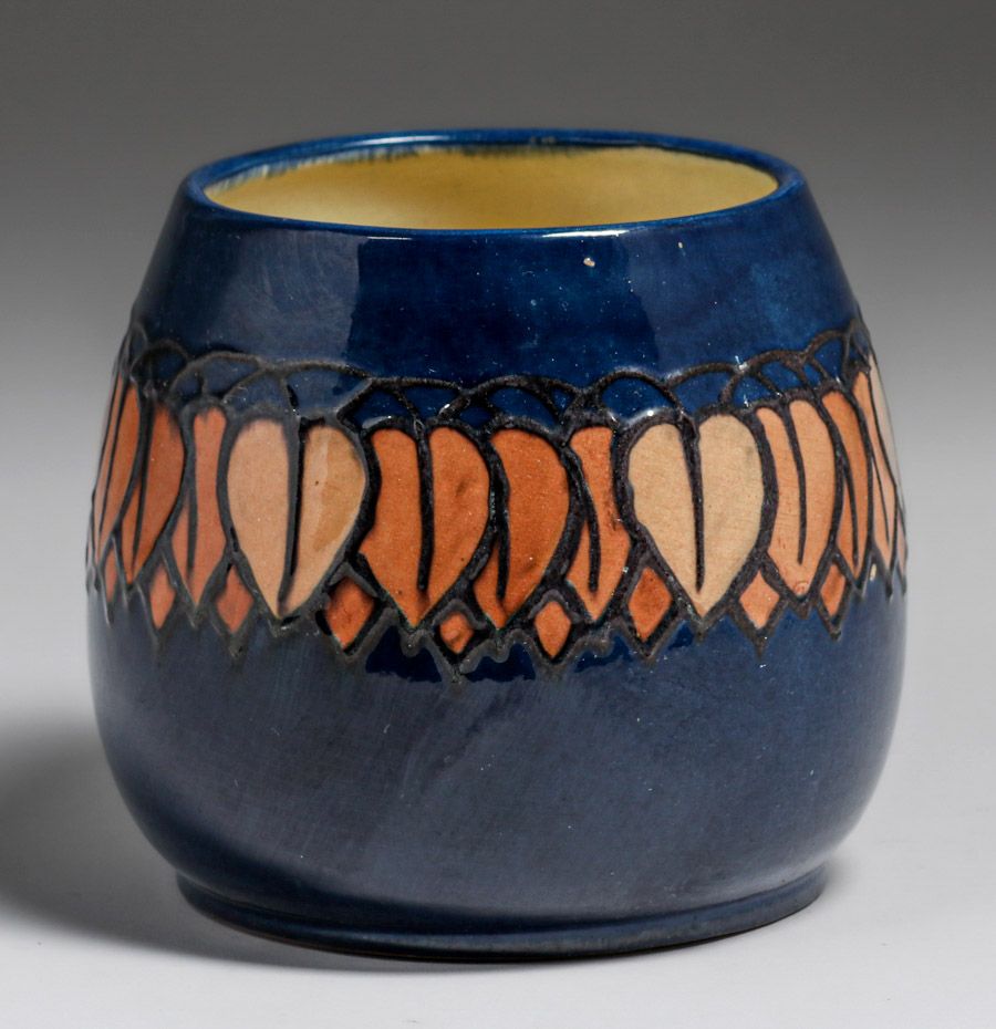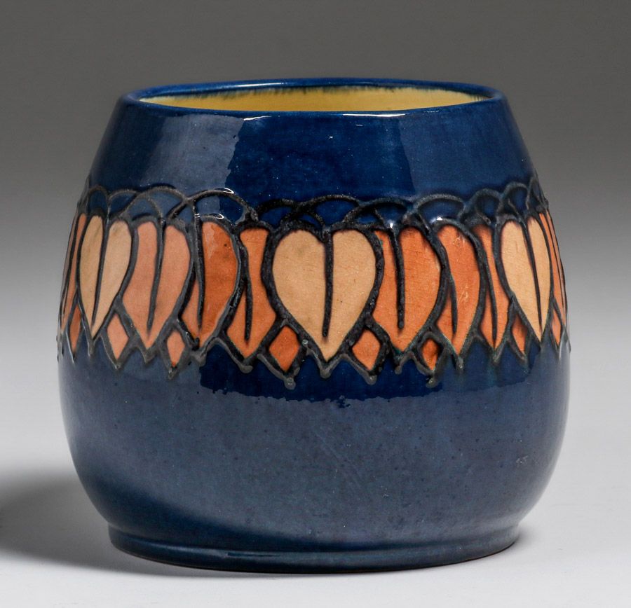 - Max Laeuger Heart Decorated German Arts & Crafts Pottery Vase c1900s