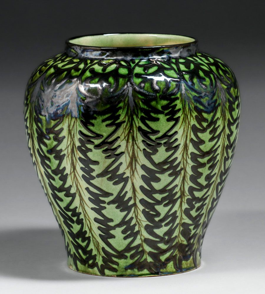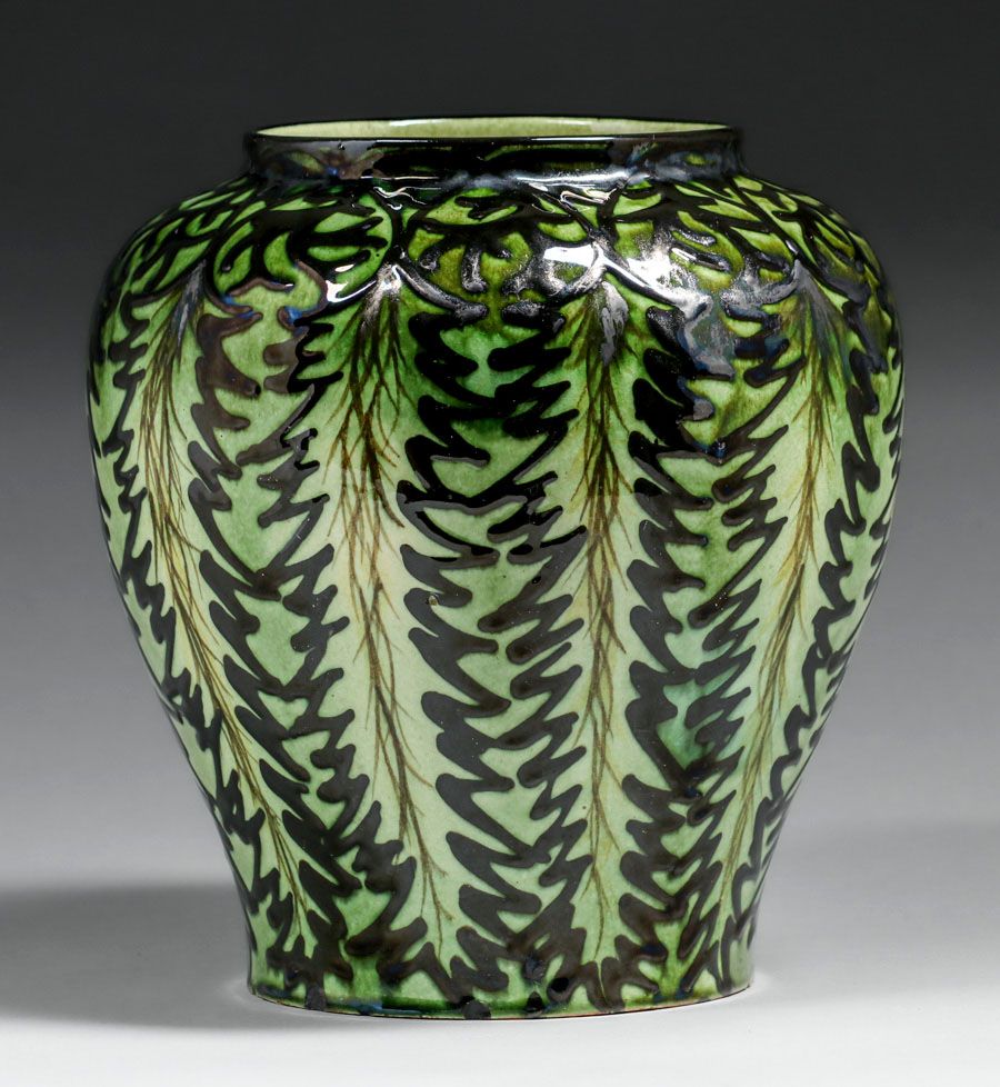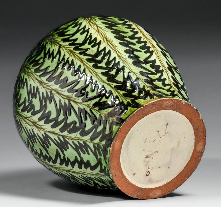Max Lauger German Art Deco Vase c1920s. Signed. A couple of small, flat base chips, otherwise perfect condition. 9"h x 8"d SOLD