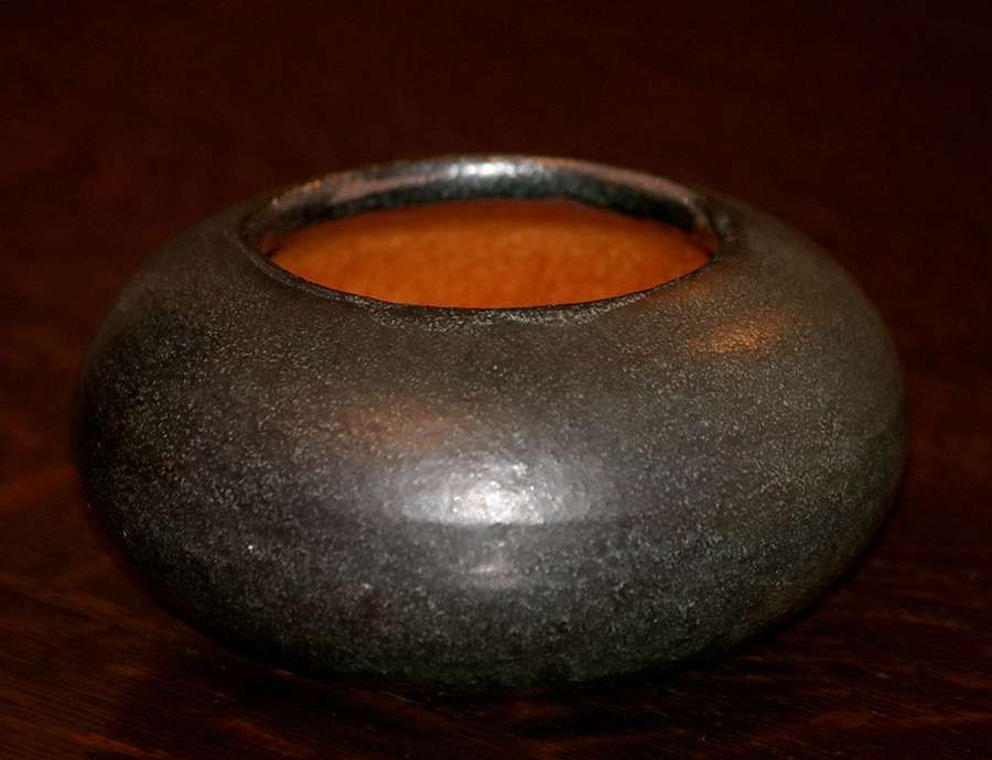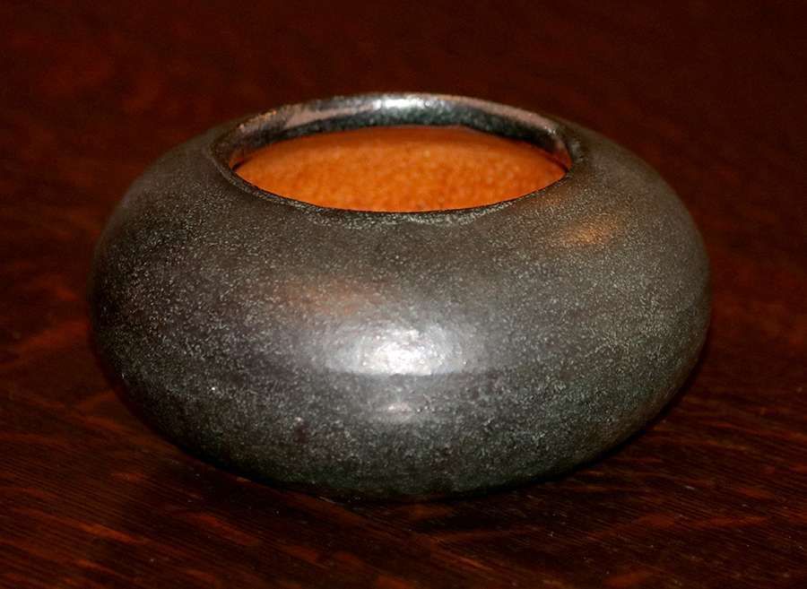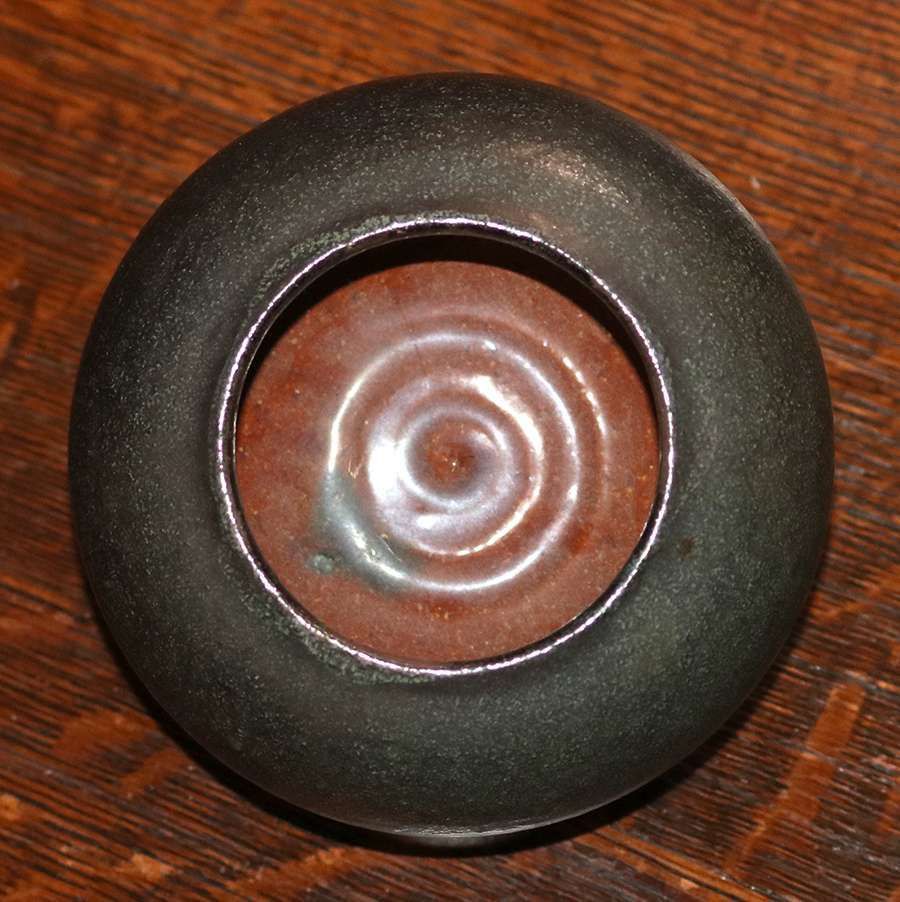 - Merrimac Pottery Matte Green Closed Bowl c1910