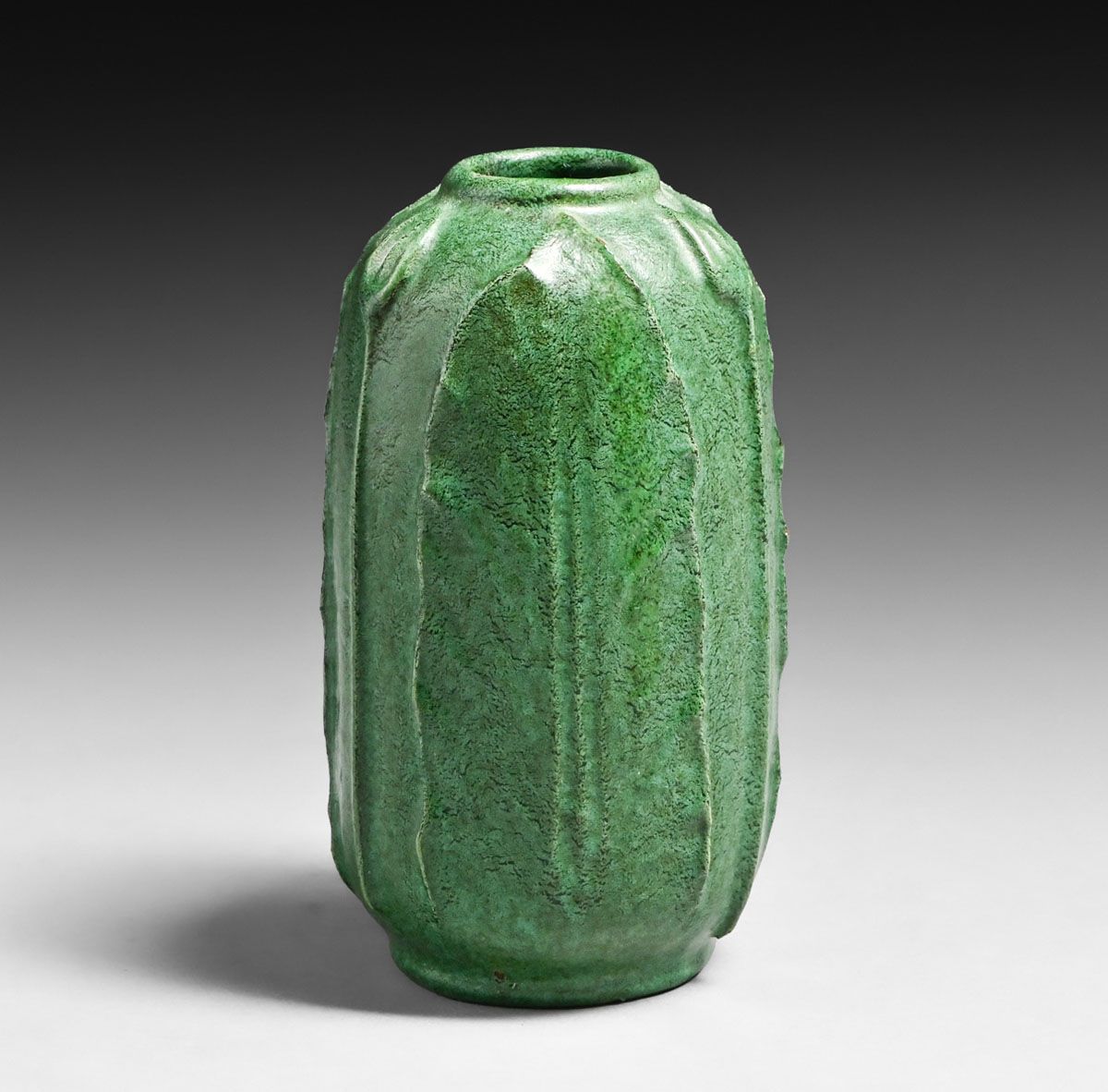 Merrimac Pottery Matte Green Vase c1905. Signed. Perfect condition. 4 5/8"h x 2 5/8"d